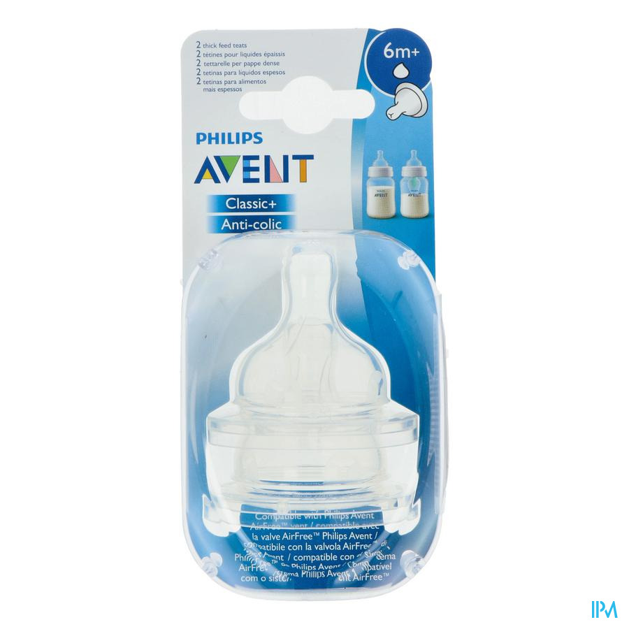 2 TETINES CLASSIC 6Mois et+ Liquide EPAIS Avent