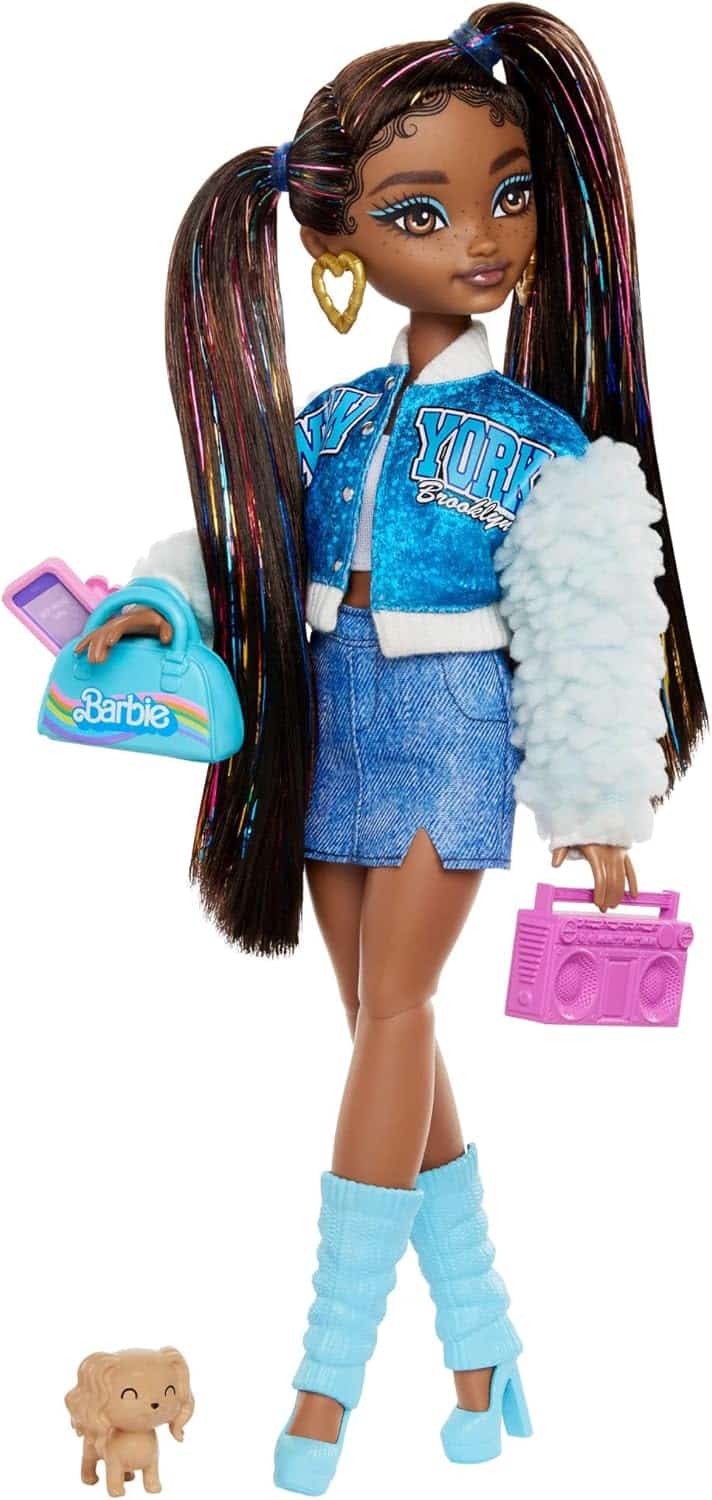 Barbie Poupée et Accessoires Équipe de Rêve « Brooklyn » articulée avec Longs Cheveux Noirs, 9 éléments sur Le thème de la Musique