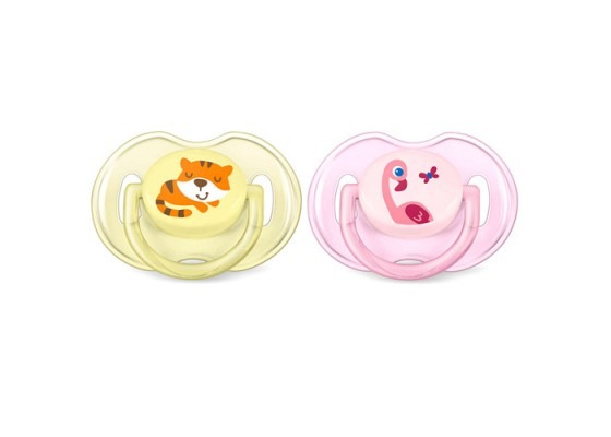 Avent 2 sucettes aérées mixte 0/6 mois Tigre et flamant rose