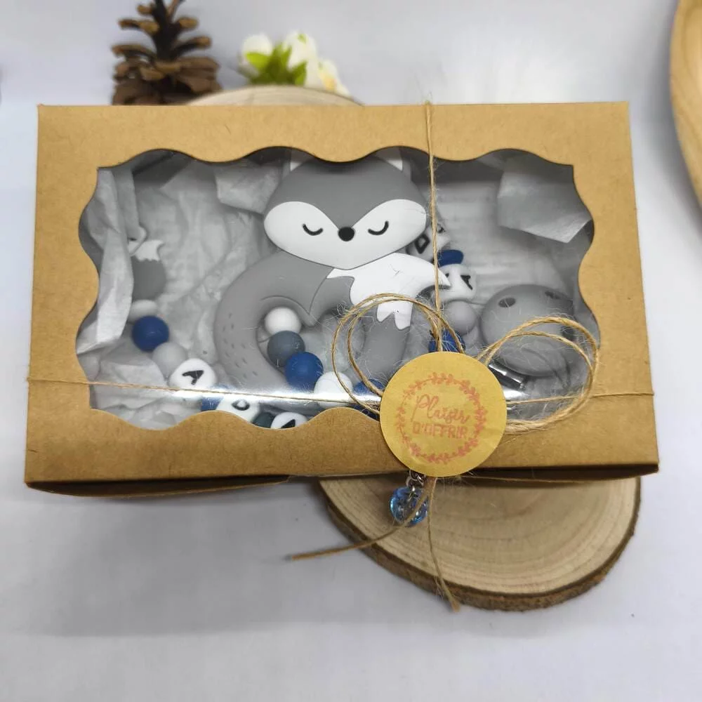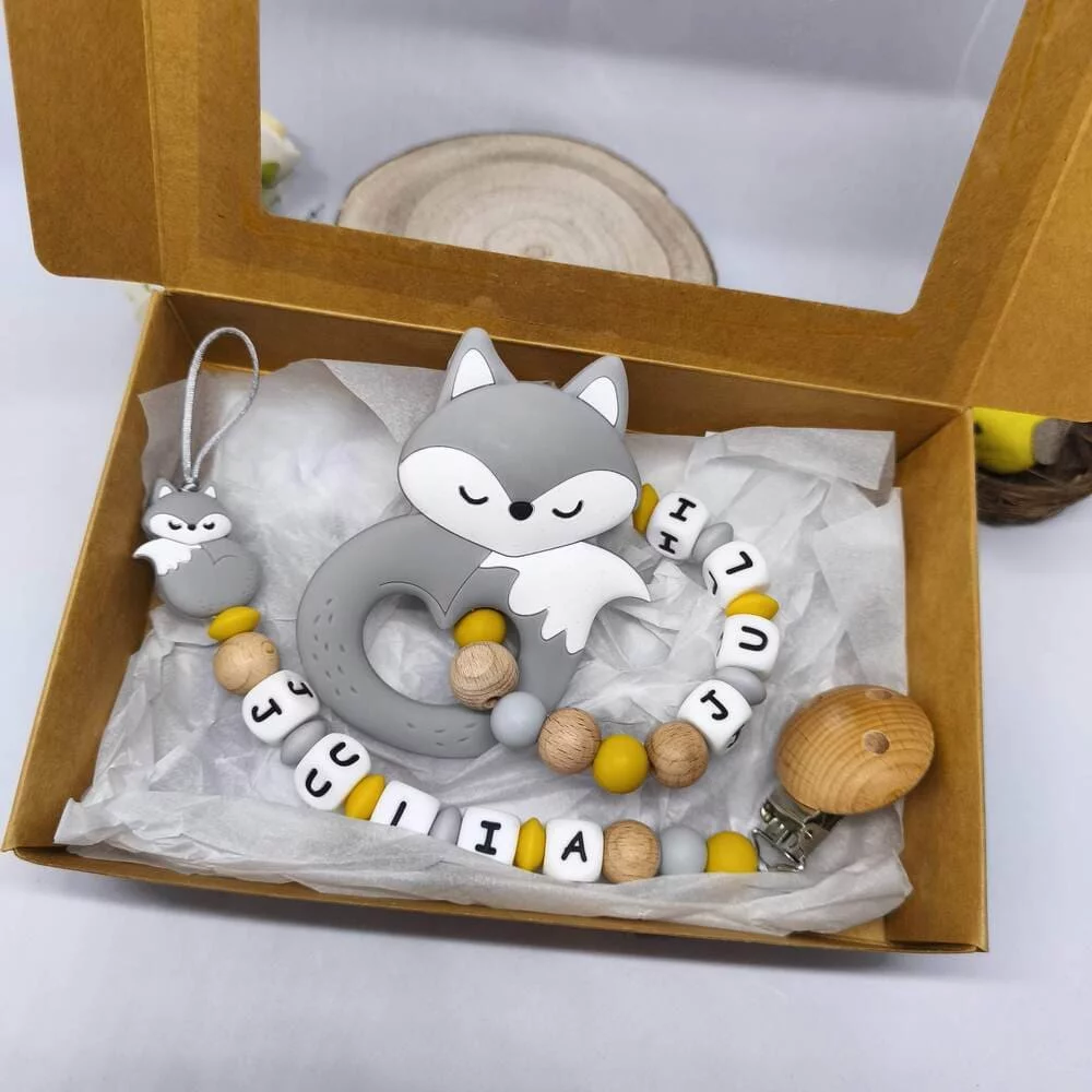 Coffret naissance personnalisé – Thème renard tout silicone
