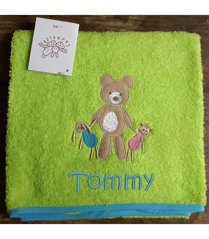 Serviette de toilette OURS anis personnalisée avec un prénom