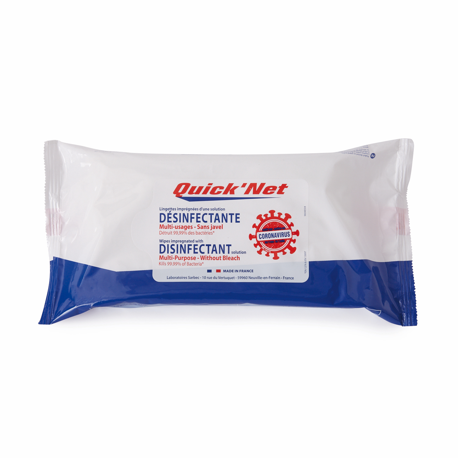 Lingettes désinfectantes actives sur covid X50 QUICK’NET