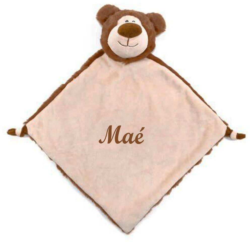 Doudou ours carré personnalisé avec le prénom de bébé