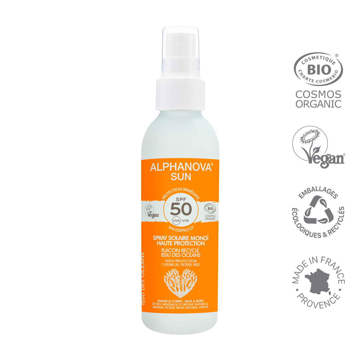 Spray solaire monoï SPF50 ALPHANOVA