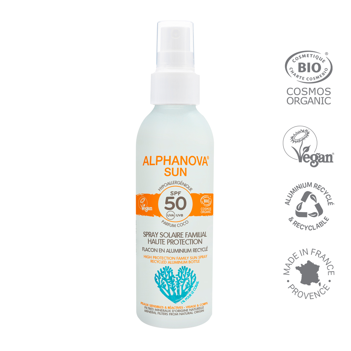 Spray solaire familial SPF50 ALPHANOVA