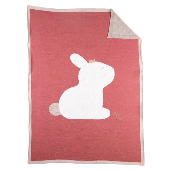 PILI COUVERTURE TRICOT 75X100CM JACQUARD BIO LINAJOY ROSE FONCE NOUKIES