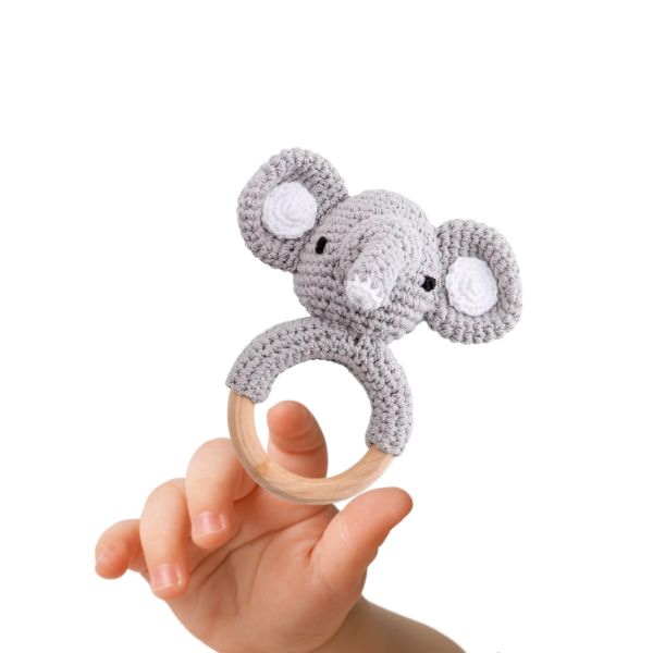 Cet anneau de dentition en bois et crochet avec une tête d’éléphant gris crochetée est l’accessoire idéal pour accompagner votre bébé dans ses premiers mois. Alliant le bois naturel et le crochet artisanal, cet anneau offre un soulagement doux et sécurisé pendant les poussées dentaires tout en respectant les principes de la méthode Montessori. En plus d’être un outil d’éveil sensoriel, cet anneau peut devenir un cadeau original et plein de tendresse pour toute occasion.