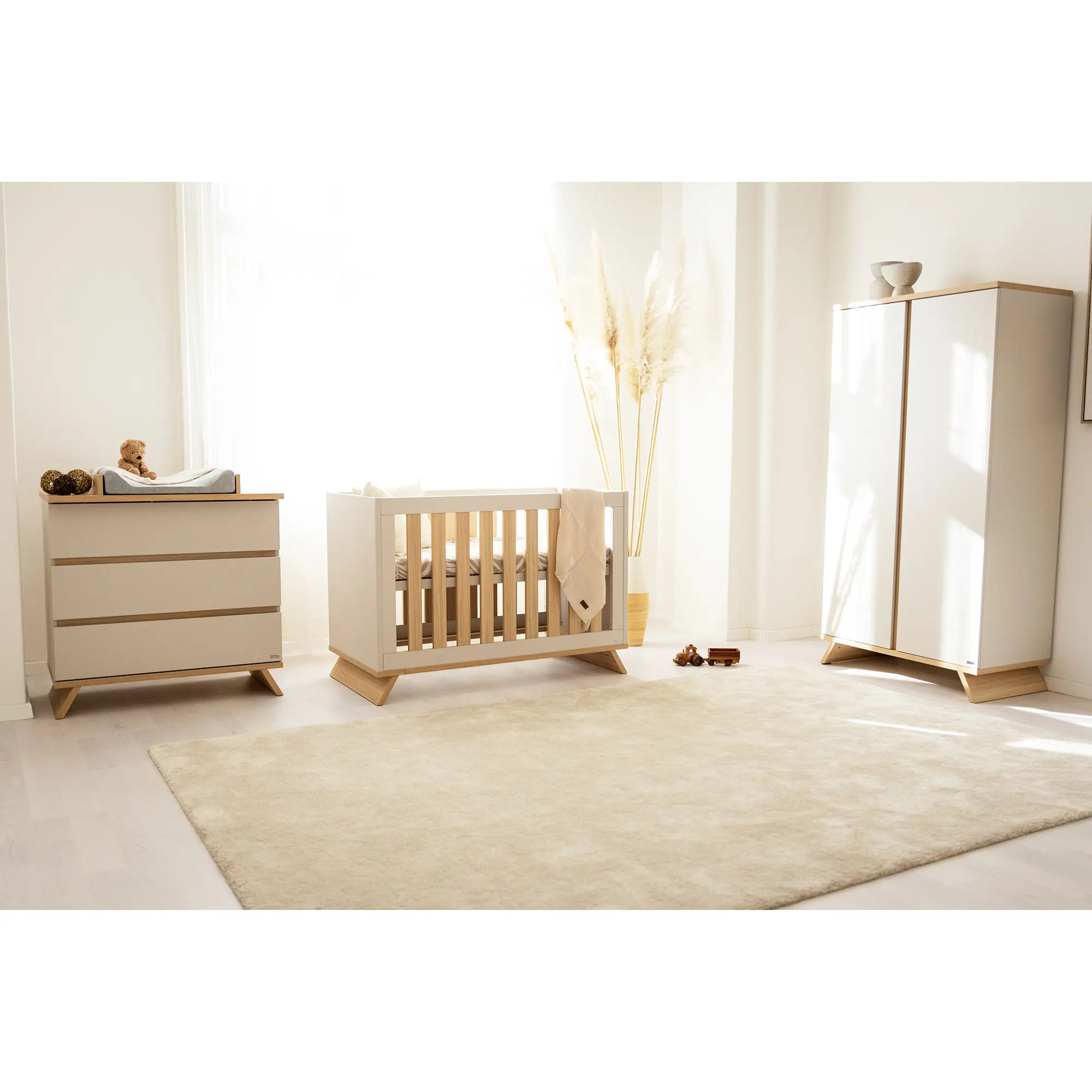 Avec ses lignes épurées et ses deux portes silencieuses, l’armoire Sienna est idéale pour organiser la chambre de bébé en toute simplicité. Son format compact s’adapte parfaitement aux petits espaces tout en offrant un volume de rangement généreux. Vêtements, draps, gigoteuses et petits objets trouvent facilement leur place, bien protégés et toujours à portée de main.