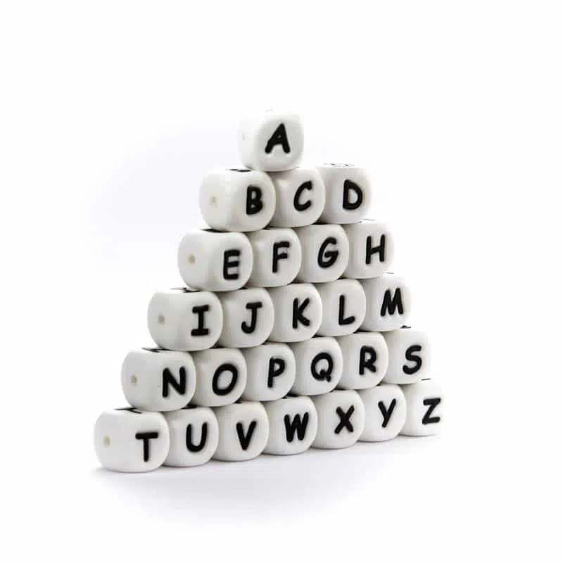 La longueur du modèle est conservée lors de la personnalisation : certaines perles décoratives peuvent être remplacées par des lettres afin de préserver les proportions du design.