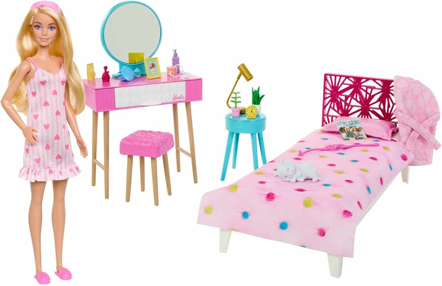 Barbie Coffret La Chambre De Barbie, Poupée Mannequin, Un Lit, Une Coiffeuse, Un Chaton Et De Nombreux Accessoires, Jouet Enfant, Dès 3 Ans