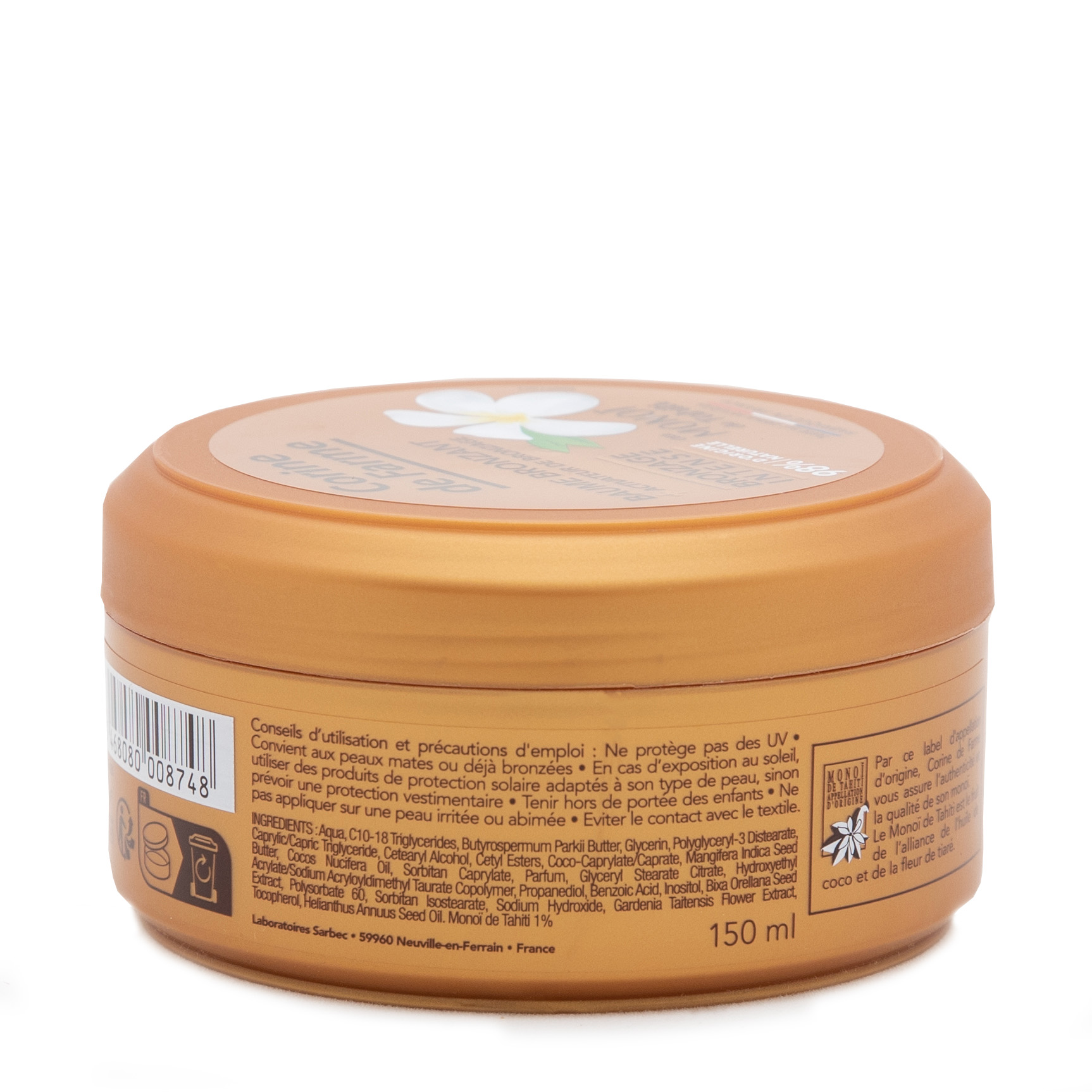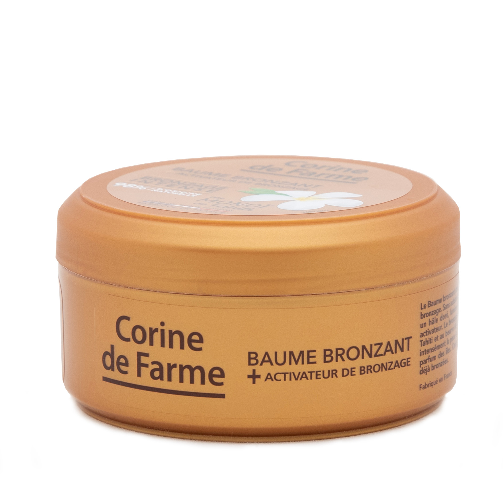 Le Baume bronzant est une émulsion qui stimule, accélère et intensifie le bronzage grâce à son activateur de bronzage. Il procure rapidement à la peau un hâle doré, lumineux et durable, sans agent autobronzant. Le bronzage est sublimé. Le Baume bronzant contient du Monoï de Tahiti et du beurre de Karité. Il hydrate et nourrit intensément la peau, tout en l’enveloppant d’un délicieux parfum des îles. Son usage est prévu pour les peaux mates ou déjà bronzées.