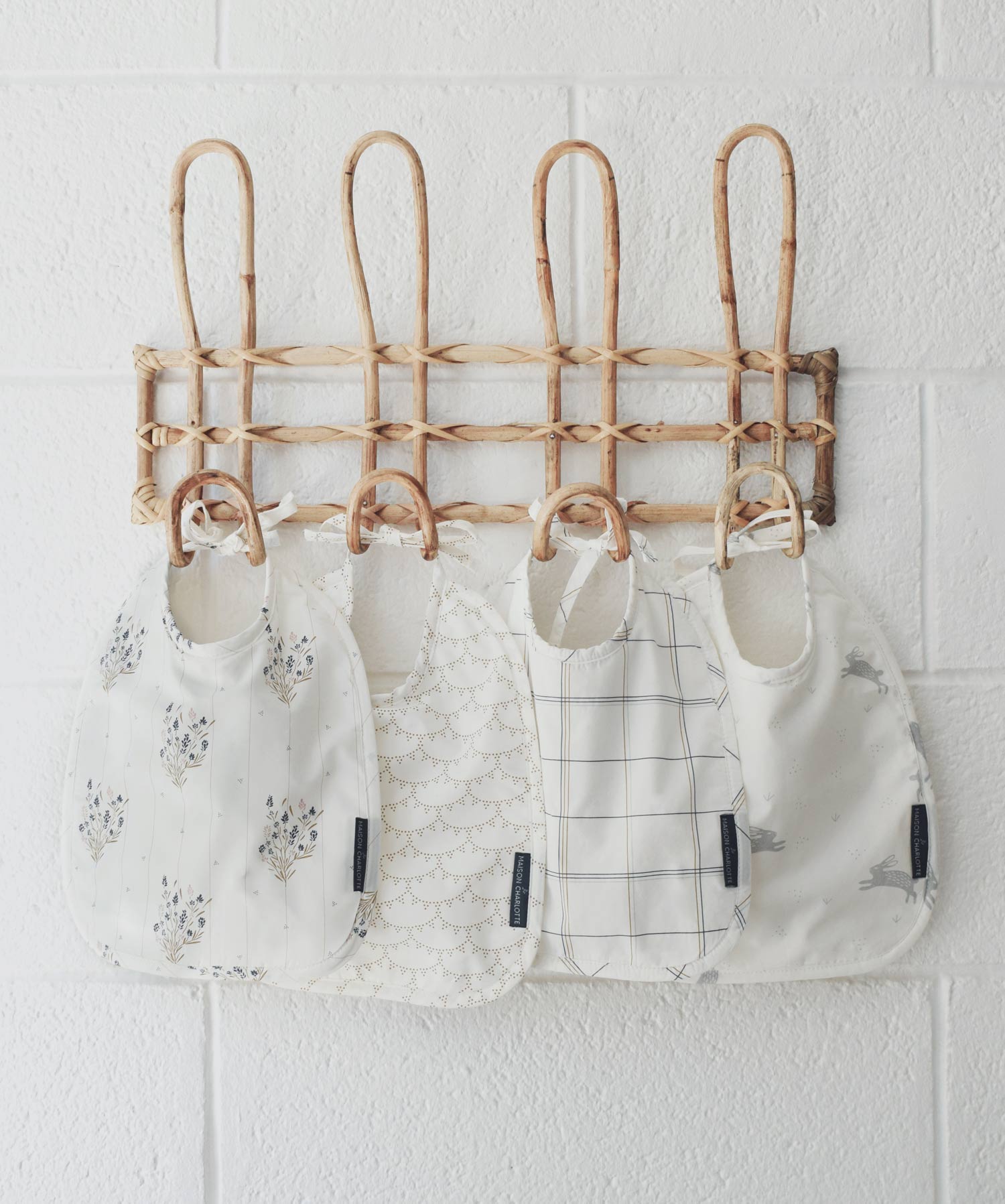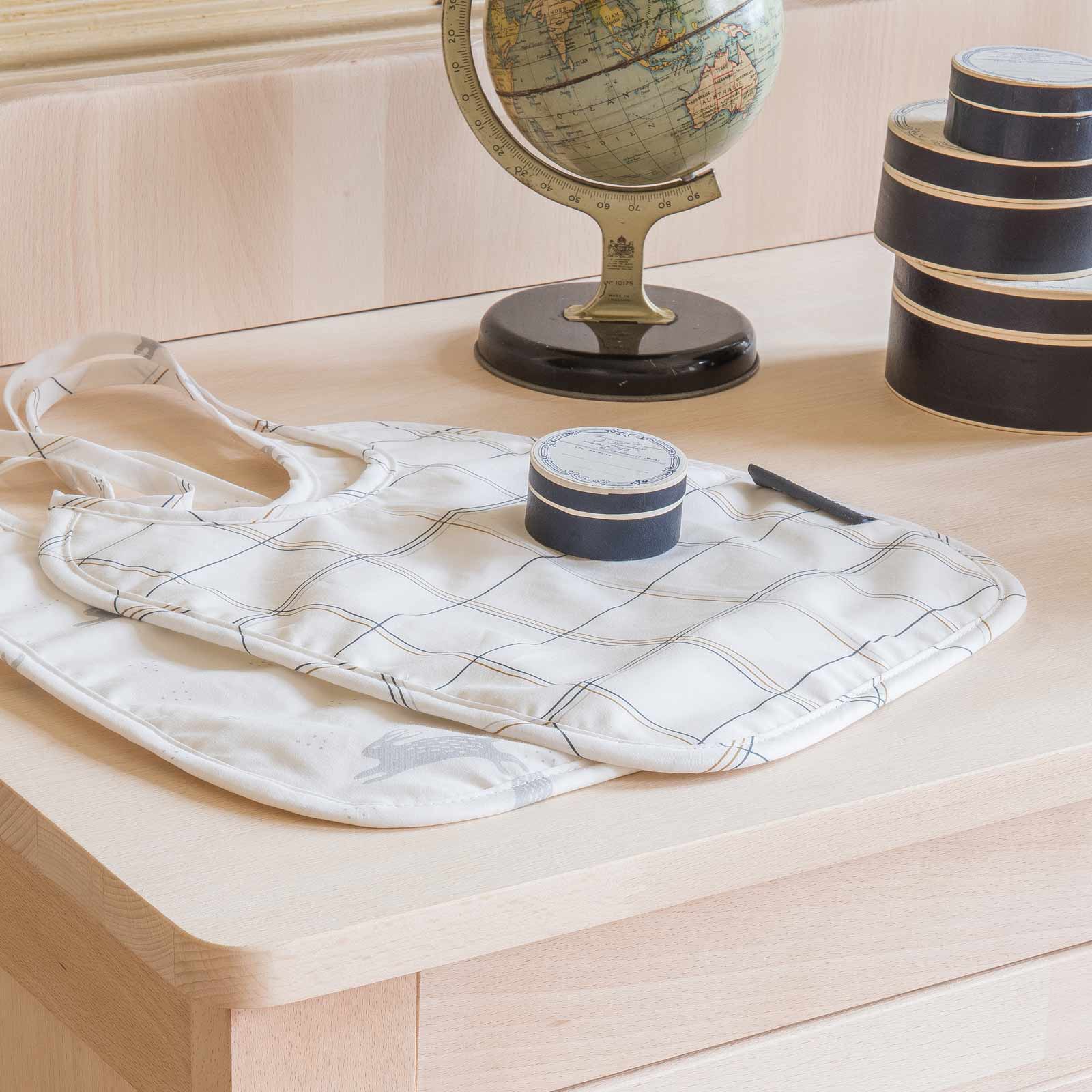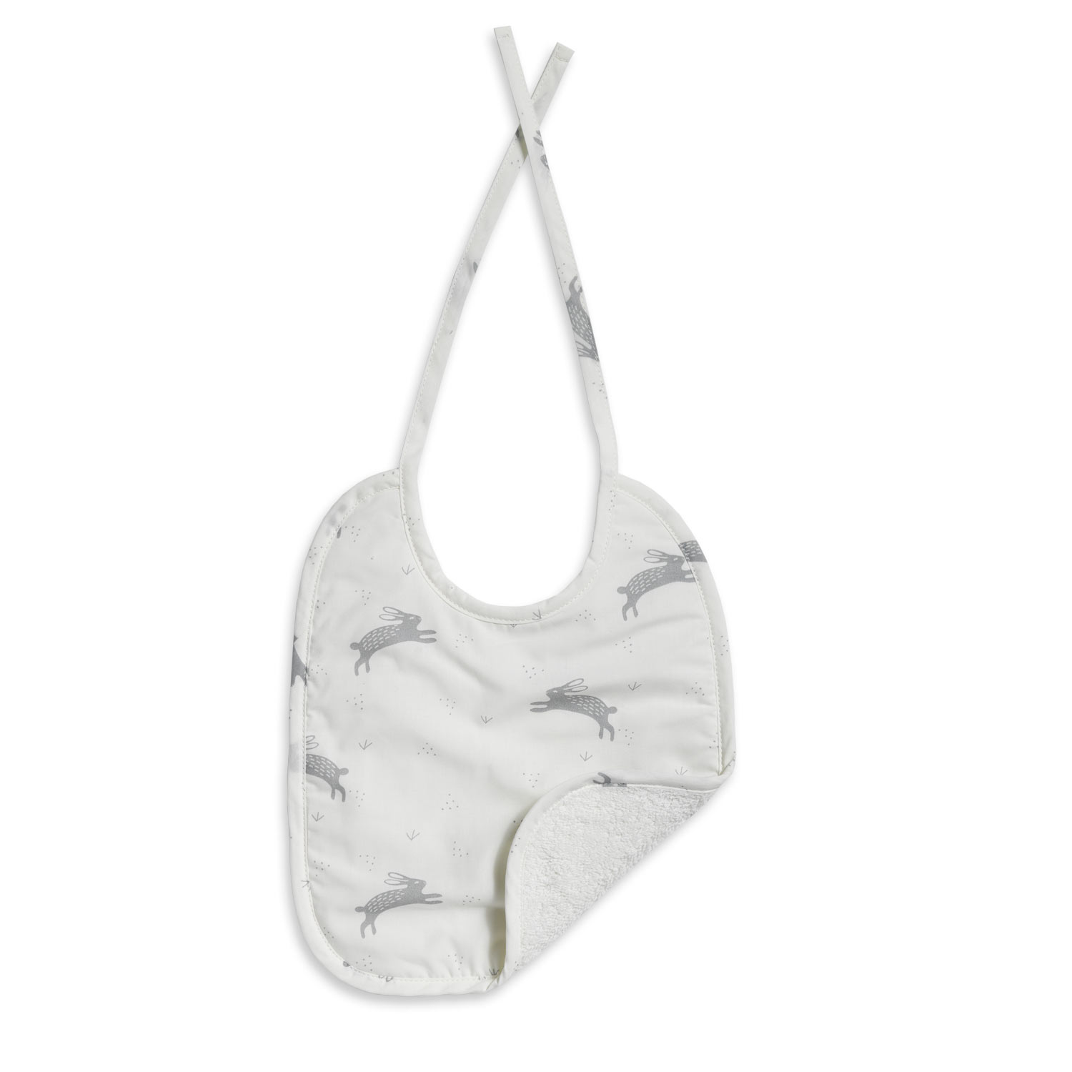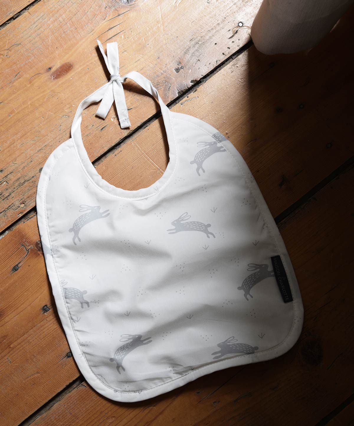 Ce bavoir pour bébé orné de lapins suivra votre nourrisson pendant ses premiers mois. De la table jusqu’à son tapis de jeu, il sera son fidèle compagnon. Il est composé de percale de coton biologique sur la face comprenant les motifs exclusifs à lapins et d’une matière en éponge de coton bio au coloris uni naturel sur l’autre face. Maison Charlotte a associé ce bavoir de dimensions 25×30 cm à des liens en coton naturel qui viendront s’accrocher avec la plus grande tendresse autour du cou de votre bébé. Voilà une belle idée de cadeau à offrir pour les nouveau-nés. Le bavoir pourra être associé à d’autres produits de la gamme Belleville pour un univers complet.