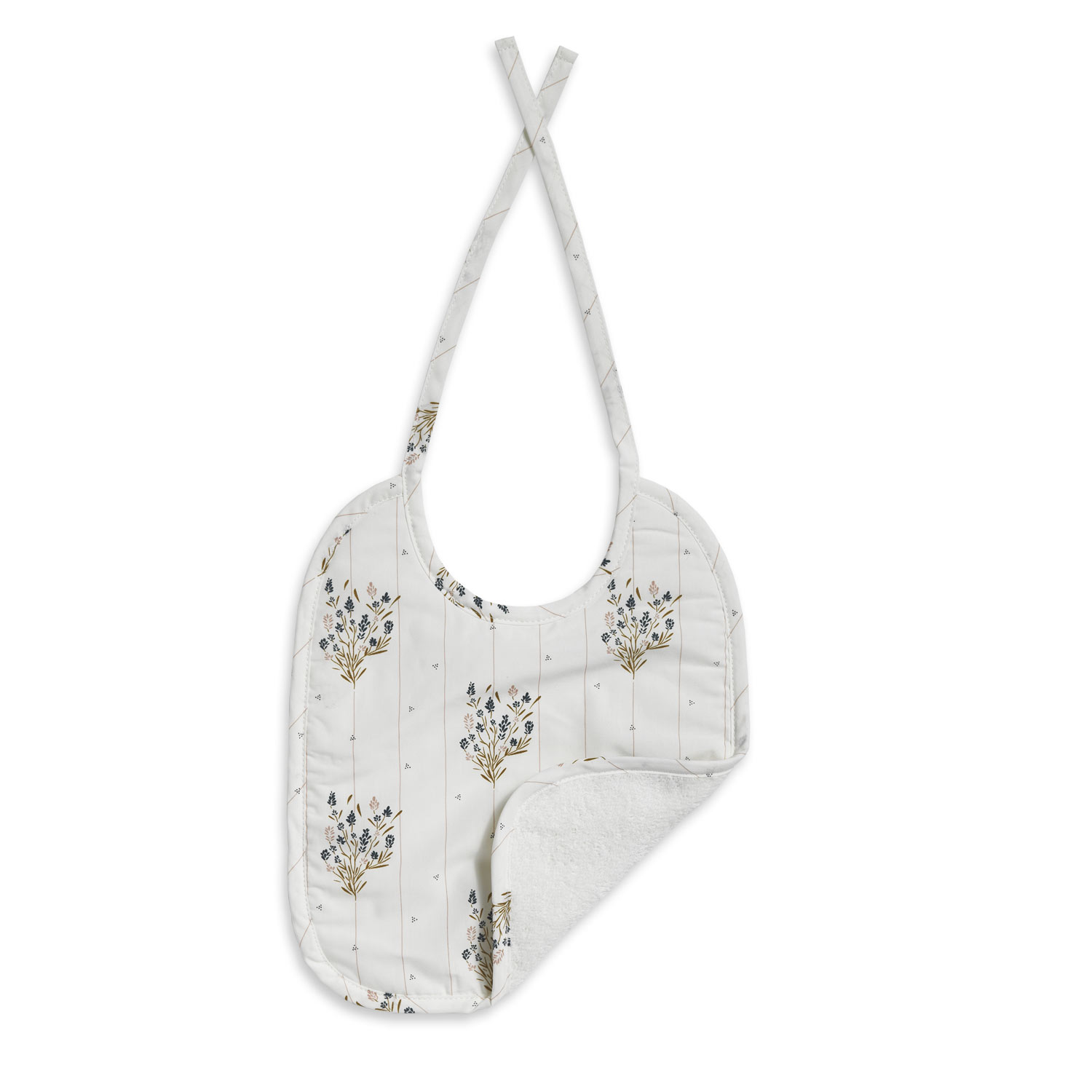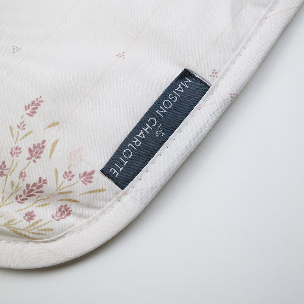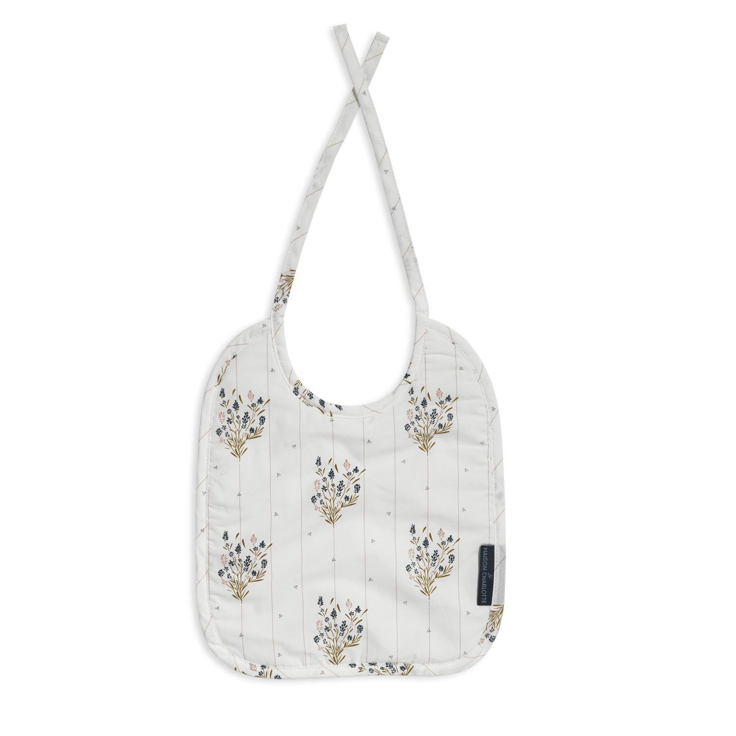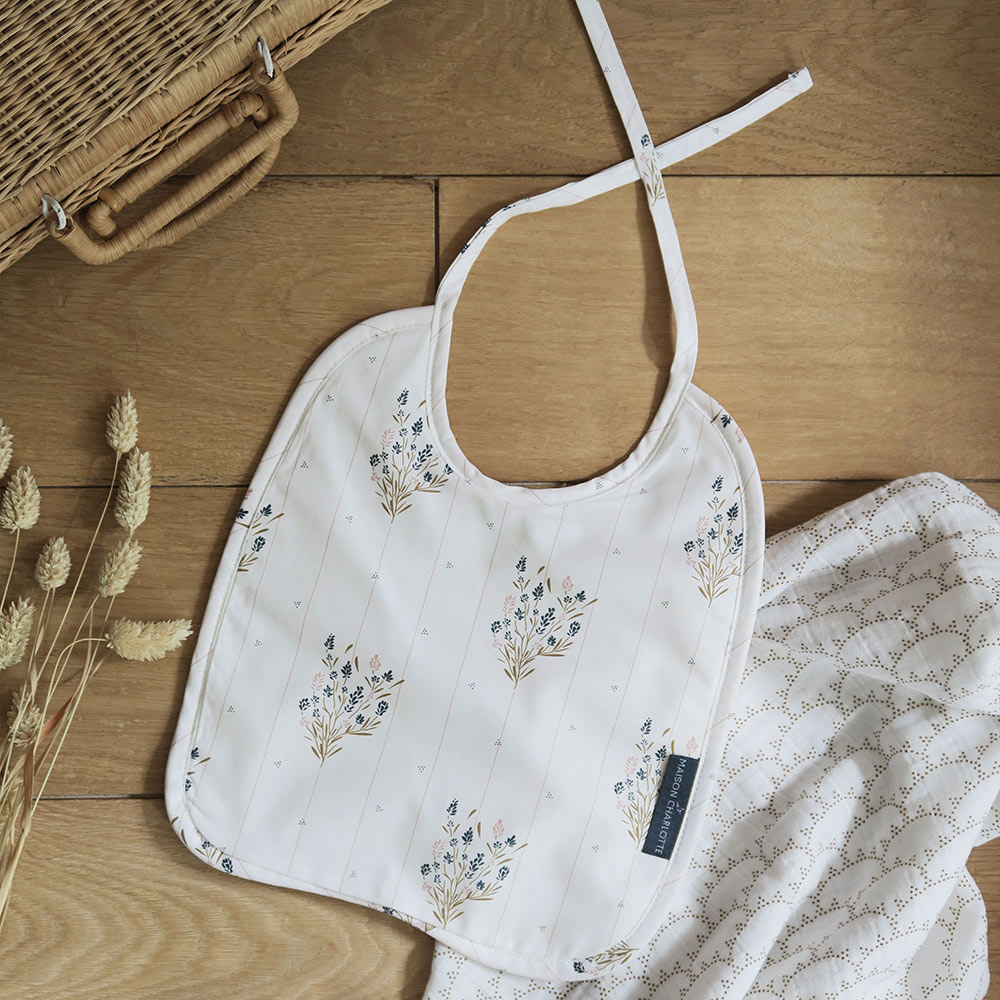 Qui n’a jamais rêvé d’avoir un bavoir élégant qui protège bébé efficacement ? Le bavoir pour bébé Madeleine de dimensions 25×30 cm vous offre la solution ! Ses motifs en forme de fleurs ponctués de lignes fines feront leur effet sur bébé. Maison Charlotte a confectionné ce bavoir en percale de coton biologique du côté des motifs et en éponge de coton bio du côté uni naturel afin que le déjeuner de votre enfant se déroule dans les meilleures conditions. Ses liens en coton naturel seront doux à porter pour votre bébé. Celui-ci sentira à peine le poids du bavoir.