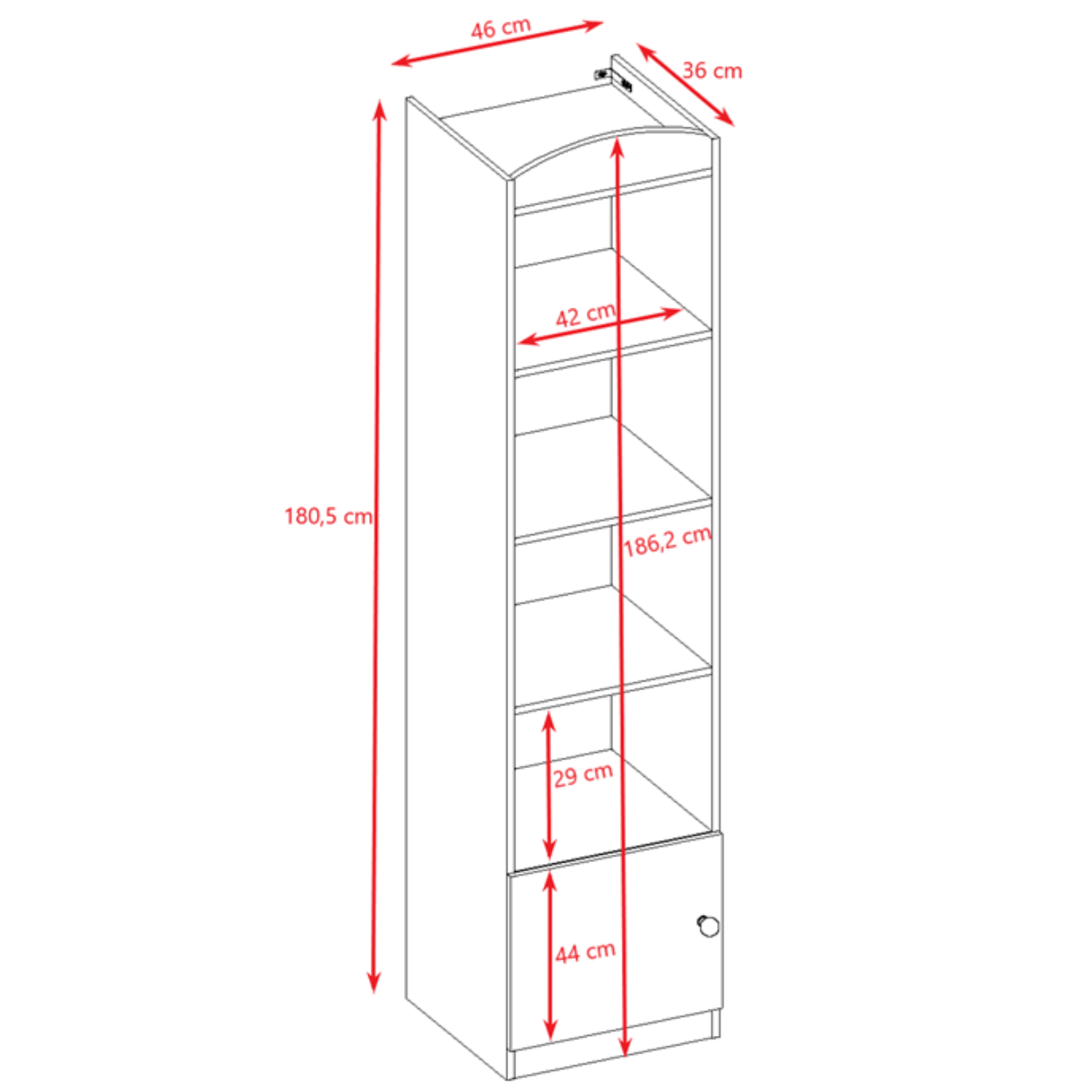 Dimensions : 180,5 x 46 x 36 cm (Hauteur x Largeur x Profondeur).