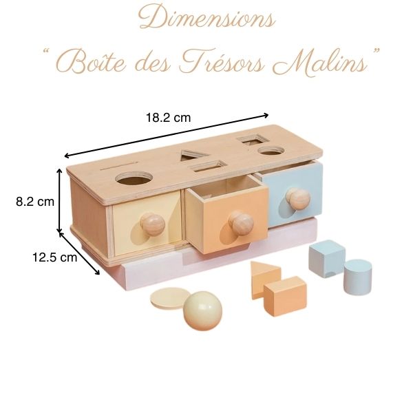 La « Boîte des Trésors Malins » est une porte ouverte sur l’apprentissage, un moyen d’éveiller la curiosité naturelle de votre bébé et une excuse parfaite pour passer du temps de qualité ensemble. Offrez à votre petit trésor ce bijou de créativité et regardez-le s’émerveiller, apprendre et grandir. Imaginez une boîte en bois élégante aux coins arrondis (parce qu’on tient à la sécurité de votre bout de chou) et remplie de mystères. Mais attendez, ce n’est pas tout ! Cette boîte magique est équipée de 3 petits tiroirs, chacun avec ses propres formes à insérer. Oui, TROIS tiroirs ! Parce qu’un seul, ce serait bien trop facile, et on aime bien challenger les bébés (gentiment, bien sûr).