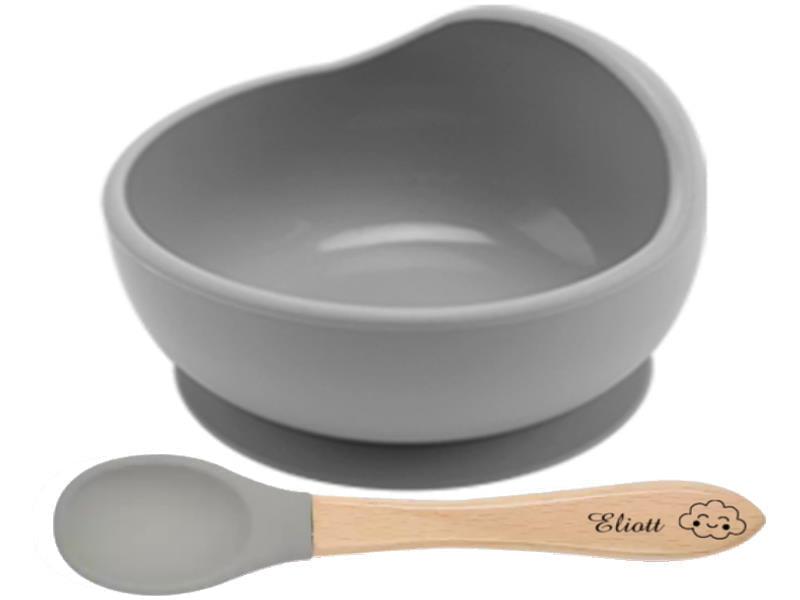 Offrez un Bol et cuillère en silicone pour bébé qui lui apporteront le sourire et l’envie d’utiliser sa cuillère en toute sécurité!