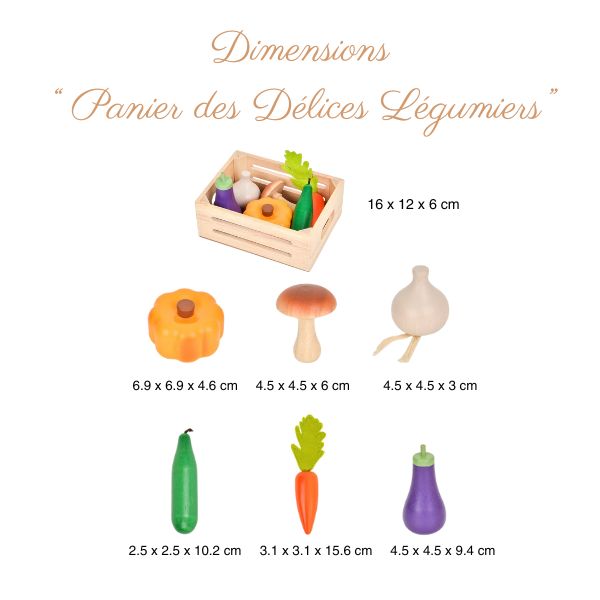 Zoom sur les délicieux légumes en bois inclus dans le panier