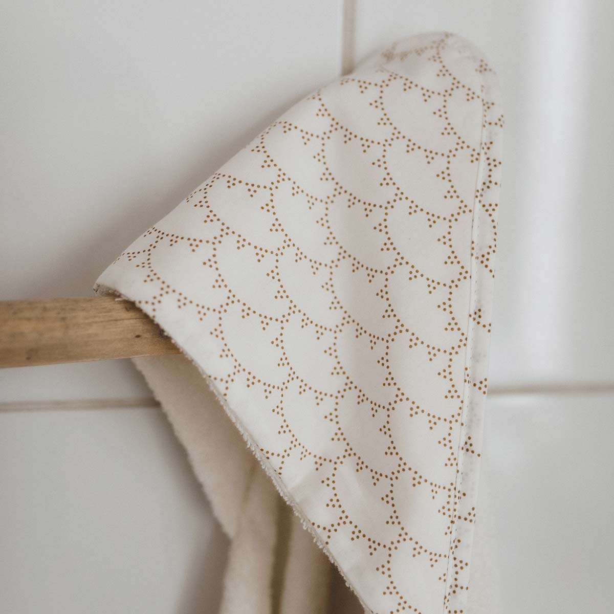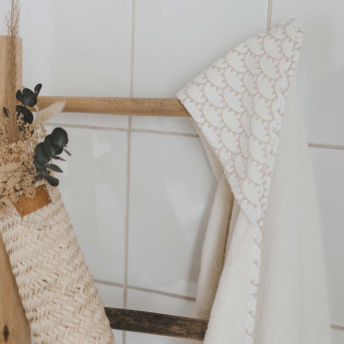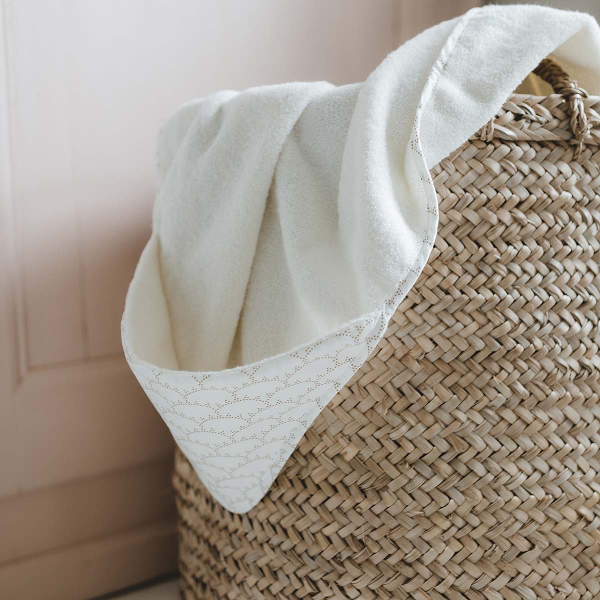 Maison Charlotte a créé une sortie de bain pour bébé pleine de douceur. Avec son tissu en éponge de coton biologique naturel et ses motifs exclusifs en percale de coton 100 % organique certifiée Oeko-Tex, votre bébé n’aura jamais été aussi élégant en sortant du bain ! Votre petit ange va adorer les motifs en guirlandes qui donnent un esprit pétillant à ce drap de bain de dimensions 70×70 cm.