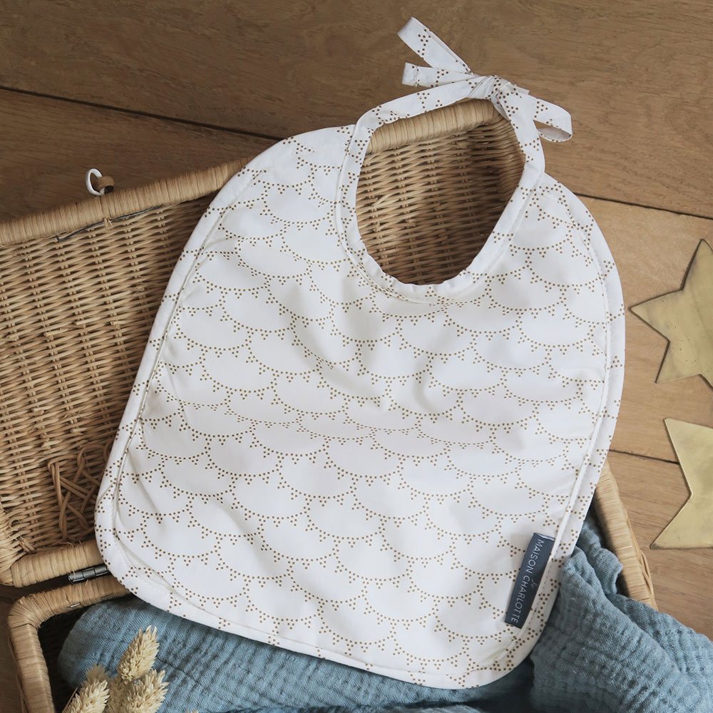 Bavoir : 25x30cm. Recto en Percale de coton, verso en éponge.
