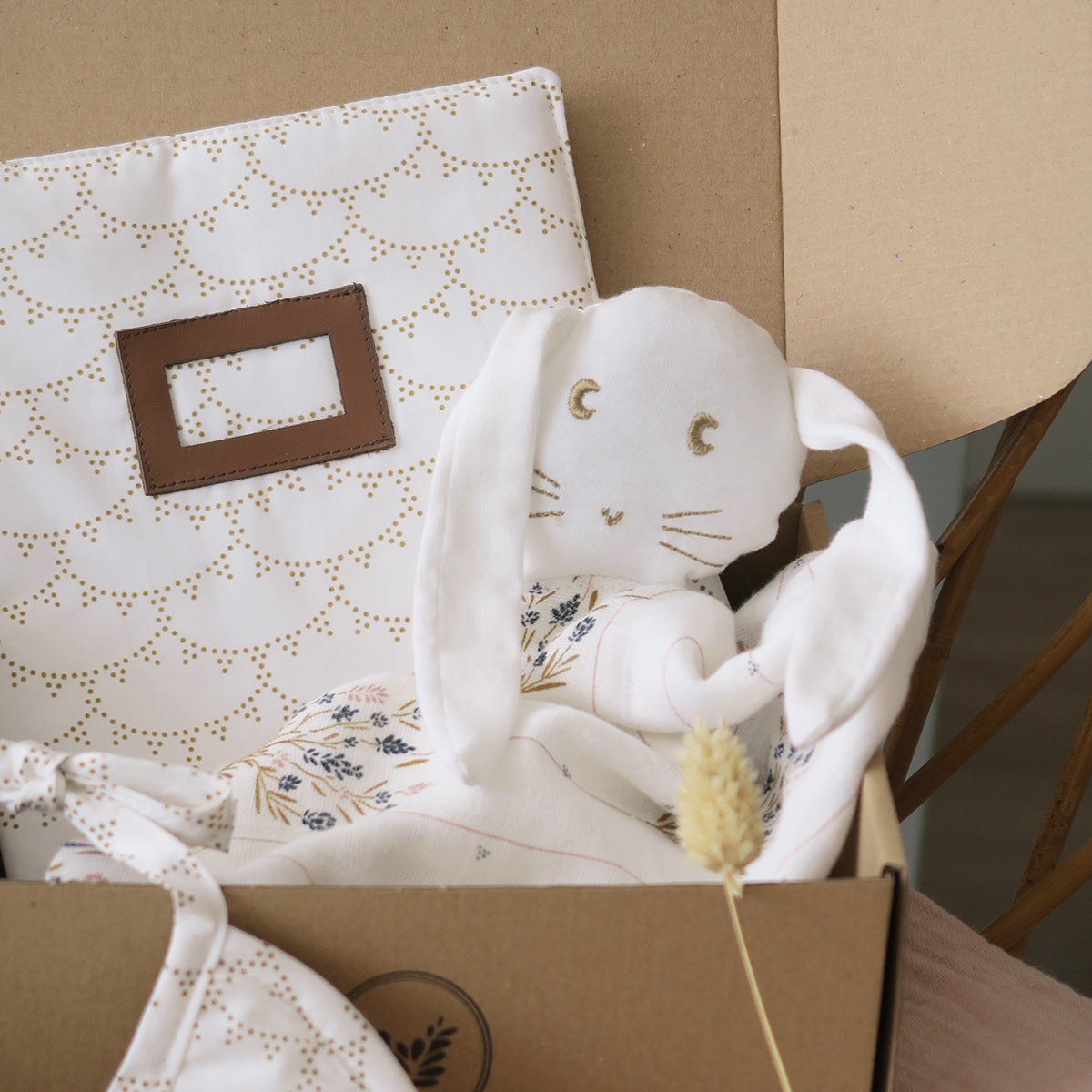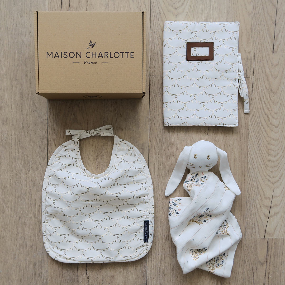 L’ensemble est livré dans une jolie boîte cadeau en carton naturel, et lavable en machine.