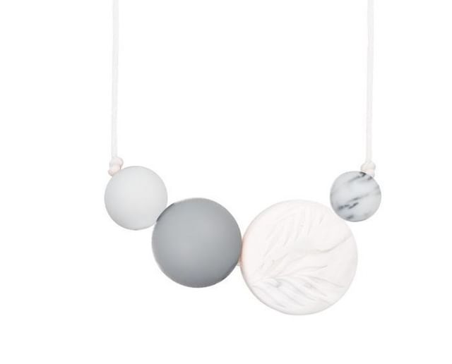 Collier de perles en silicone porté par Maman et utilisé par Bébé