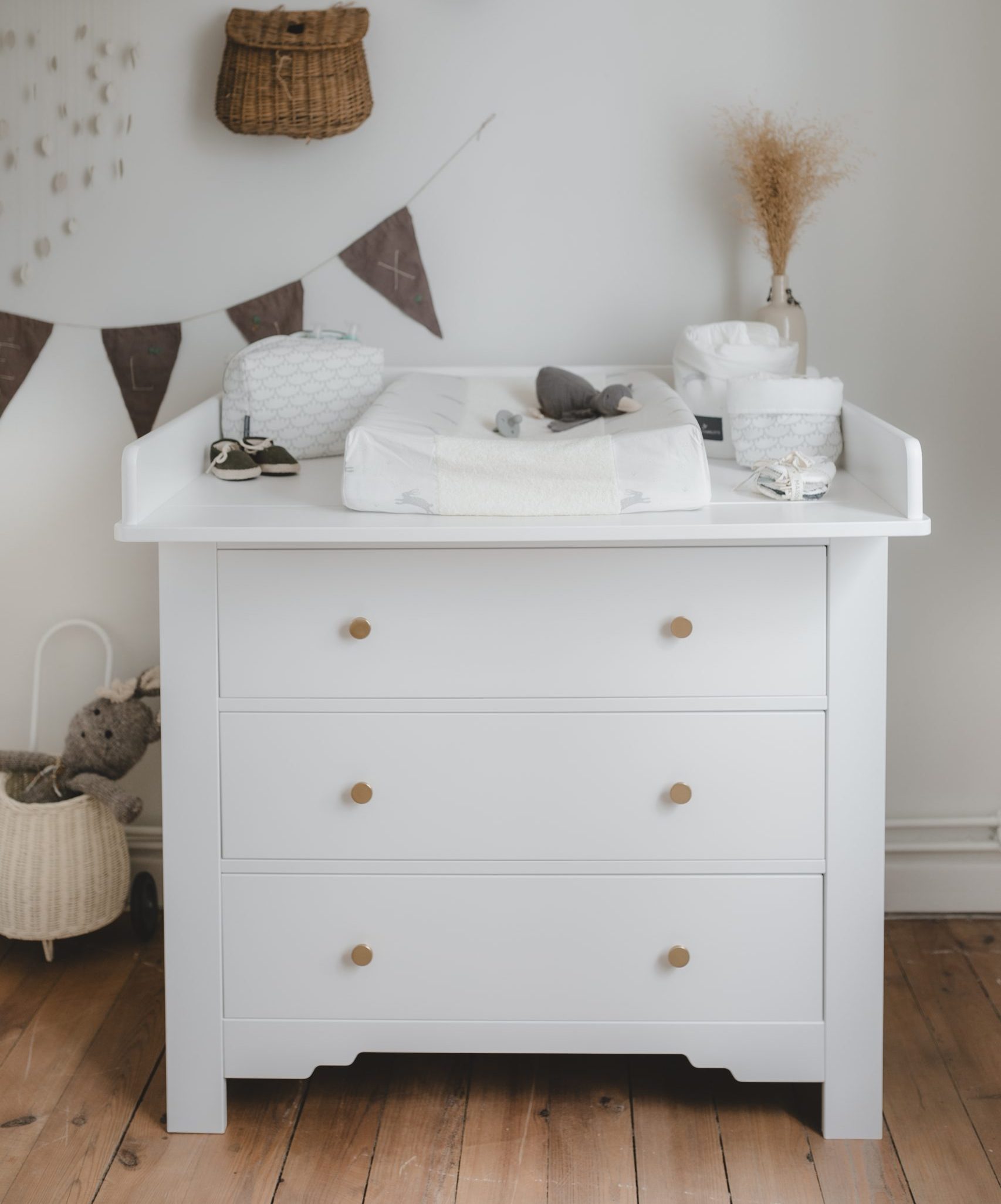 Le plan à langer Montmartre vendu séparément permettra de transformer ce meuble en commode à langer pour bébé.