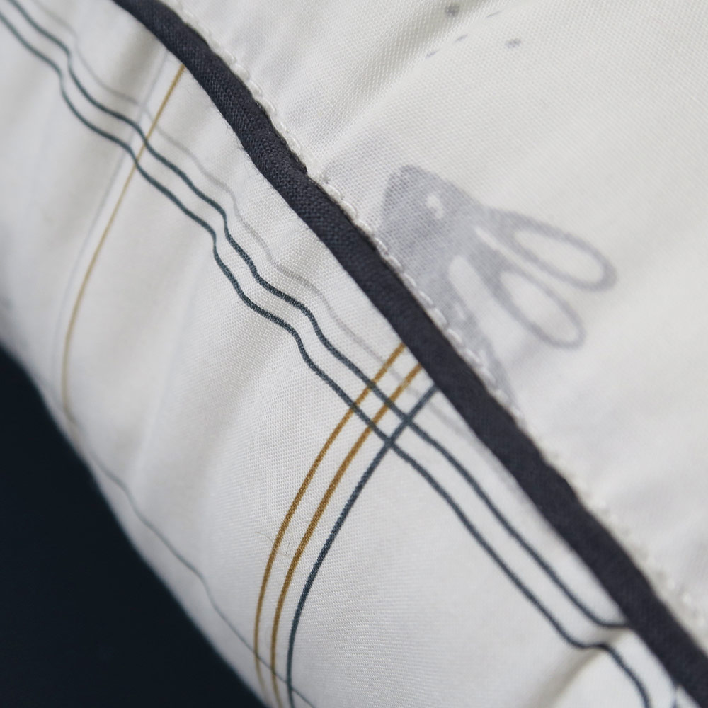 Ce coussin de 30×50 cm de Maison Charlotte en 100% percale de coton organique certifiée Oeko-Tex apportera une touche de douceur dans la chambre de votre enfant. Il sera idéal pour accompagner votre petit du lit à son tapis de jeu avec ses adorables motifs exclusifs en forme de carreaux et de petits lapins. Le passepoil teinté d’un bleu-gris réhausse le charme de ce coussin dont les couleurs seront une caresse de douceur pour les yeux délicats des enfants. C’est le cadeau rêvé pour l’arrivée d’un tout-petit dans la famille.