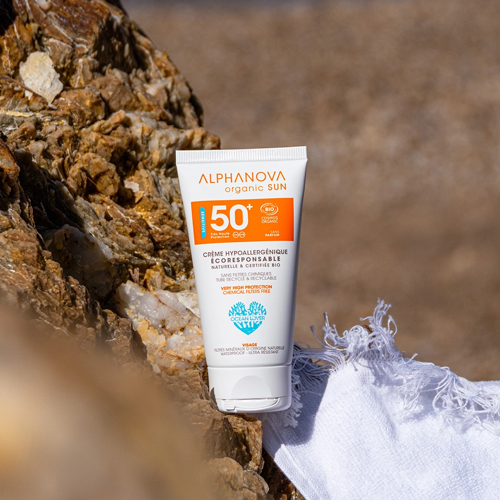 PLUS D’INFOS SUR NOTRE CRÈME SOLAIRE BIO HYPOALLERGÉNIQUE VISAGE TRÈS HAUTE PROTECTION INDICE 50+