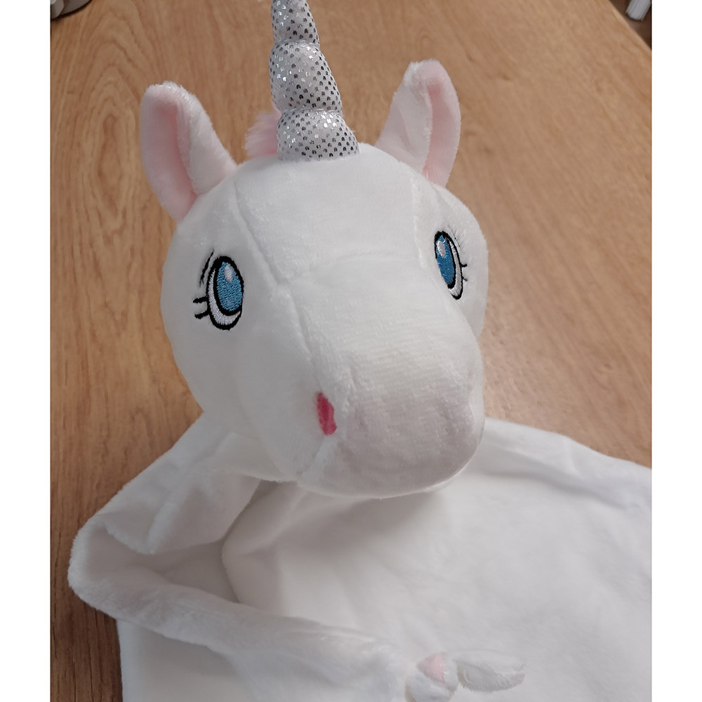 Une jolie licorne avec de beaux yeux, toute douce, elle n’attend que des petites mains pour ce faire cajoler !