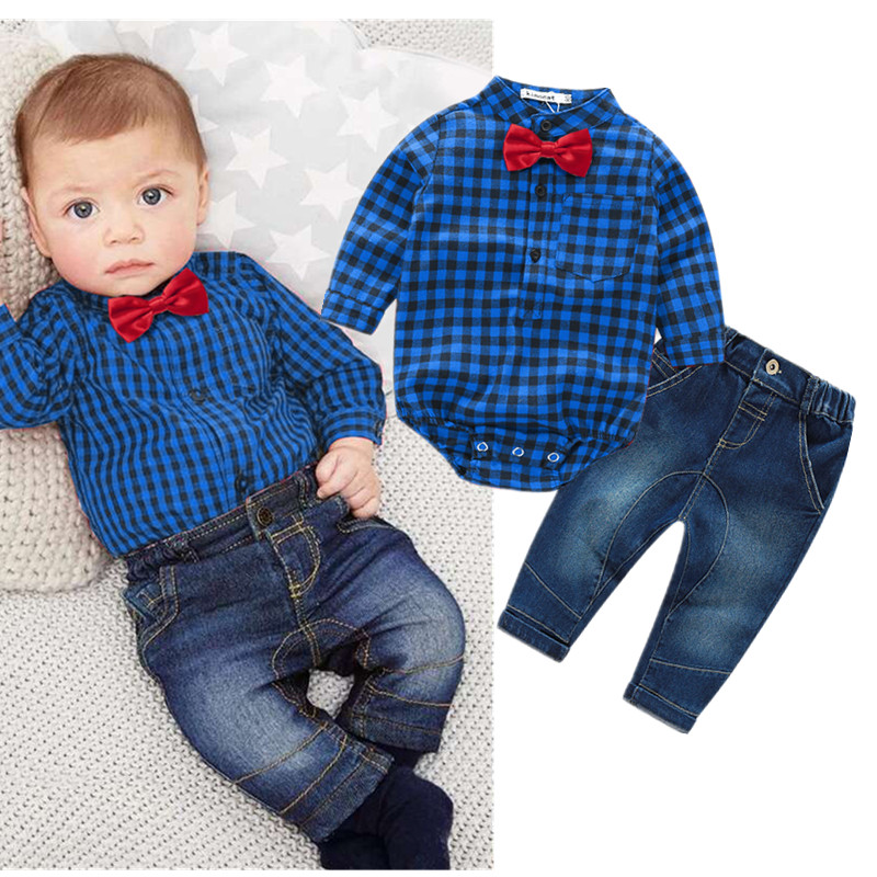 Ensemble jean chemise pour bébé de 3 à 24 mois.