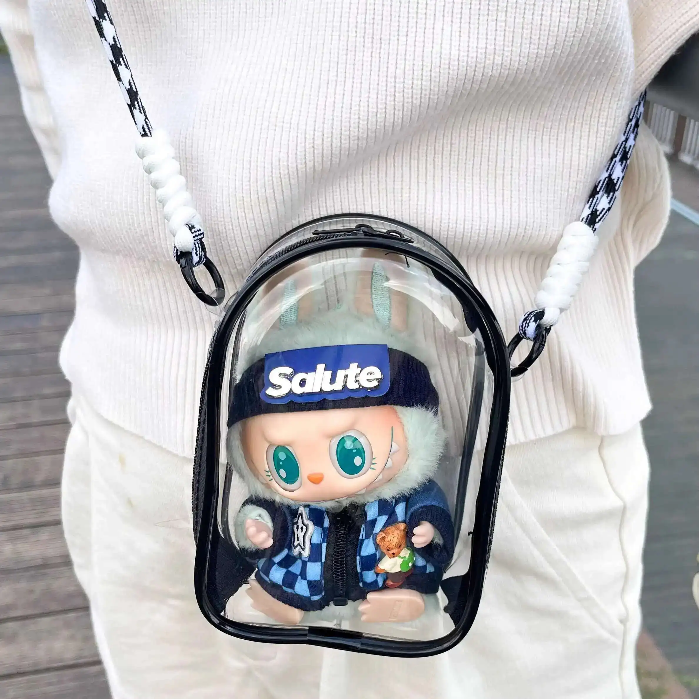 Tu veux protéger ta poupée Labubu 15 cm tout en la mettant en valeur ? Ce sac de rangement en PVC transparent est fait pour toi. Résistant, étanche et anti-poussière, il garde ta figurine en parfait état. Grâce à son bouton pratique, tu changes ta poupée facilement, et avec sa sangle (crochet ou chaîne), tu l’emportes partout. Sa forme ovale avec base arrondie ajoute une touche élégante à ta collection.