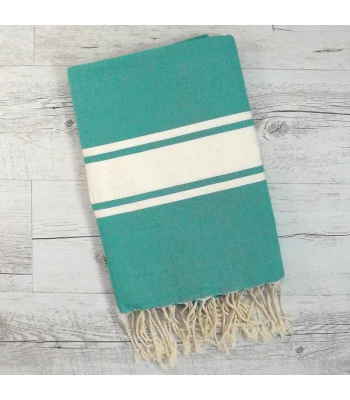 Fouta tissée de façon artisanale en Tunisie. 100% coton, franges aux deux extrémités. Dimensions 200x100cm.
