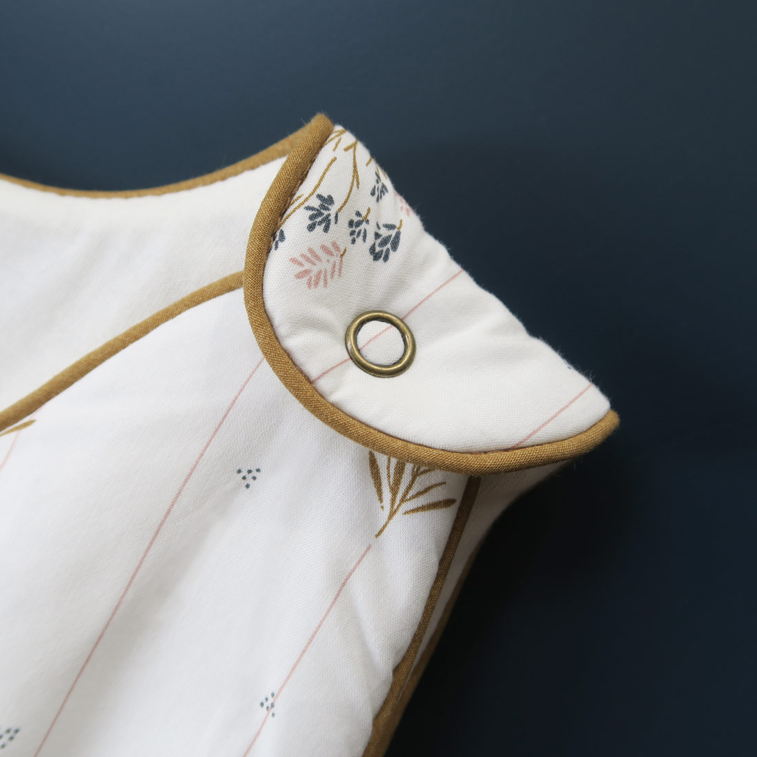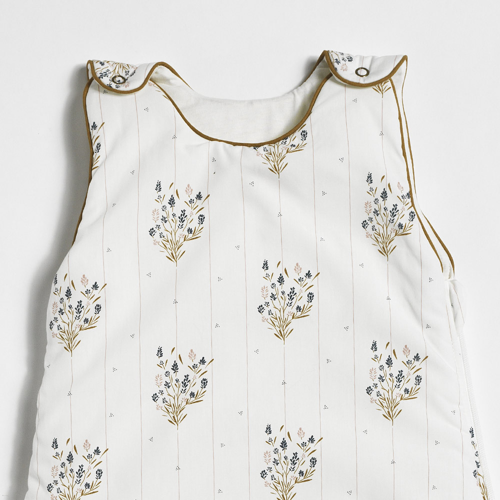 Entièrement confectionnée en percale de coton 100% biologique certifiée Oeko-Tex avec une doublure en jersey de coton bio, cette turbulette signée Maison Charlotte prendra soin de la peau de votre bébé. Ses boutons à pression et sa fermeture éclair la rendent facile d’usage. Ce sac de couchage est adapté pour les bébés de 6 à 18 mois en fonction de leur croissance. TOG : 2 – Température ambiante : 20° environ.