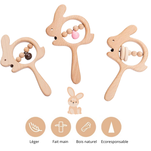 Le hochet en bois en forme de lapin est bien plus qu’un simple jouet: c’est un allié essentiel pour accompagner votre bébé dès ses premiers mois. Adapté dès la naissance, ce hochet a été spécialement conçu pour être à la fois pratique et stimulant pour les tout-petits. Il sera un compagnon éducatif et sensoriel idéal pour stimuler votre bébé.