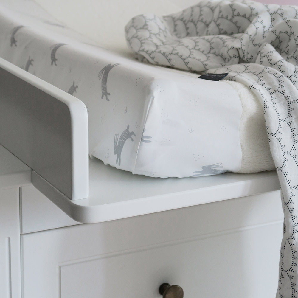 Grâce à la ravissante housse Belleville et ses adorables lapins, habillez élégamment le matelas à langer de votre tout-petit afin de lui garantir de tendres moments.