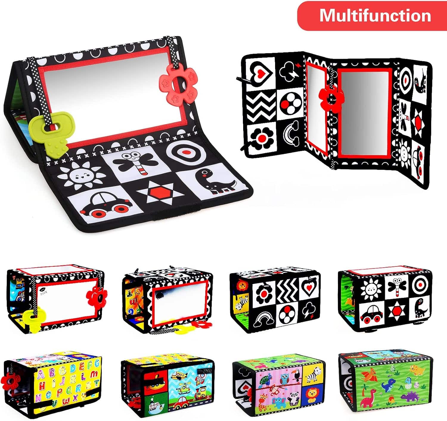 - Sécurité avant tout ! Fabriqué à partir de matériaux en coton de haute qualité, ce jouet est non seulement doux et agréable pour la peau délicate de votre bébé, mais aussi entièrement sûr et non toxique. Les miroirs sont en plastique lisse, éliminant tout risque de casse et garantissant une utilisation en toute sérénité.