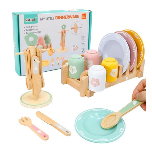 - Favorise la motricité fine : Les pièces en bois sont faciles à saisir pour les petites mains, et manipuler chaque aliment demande précision et coordination.