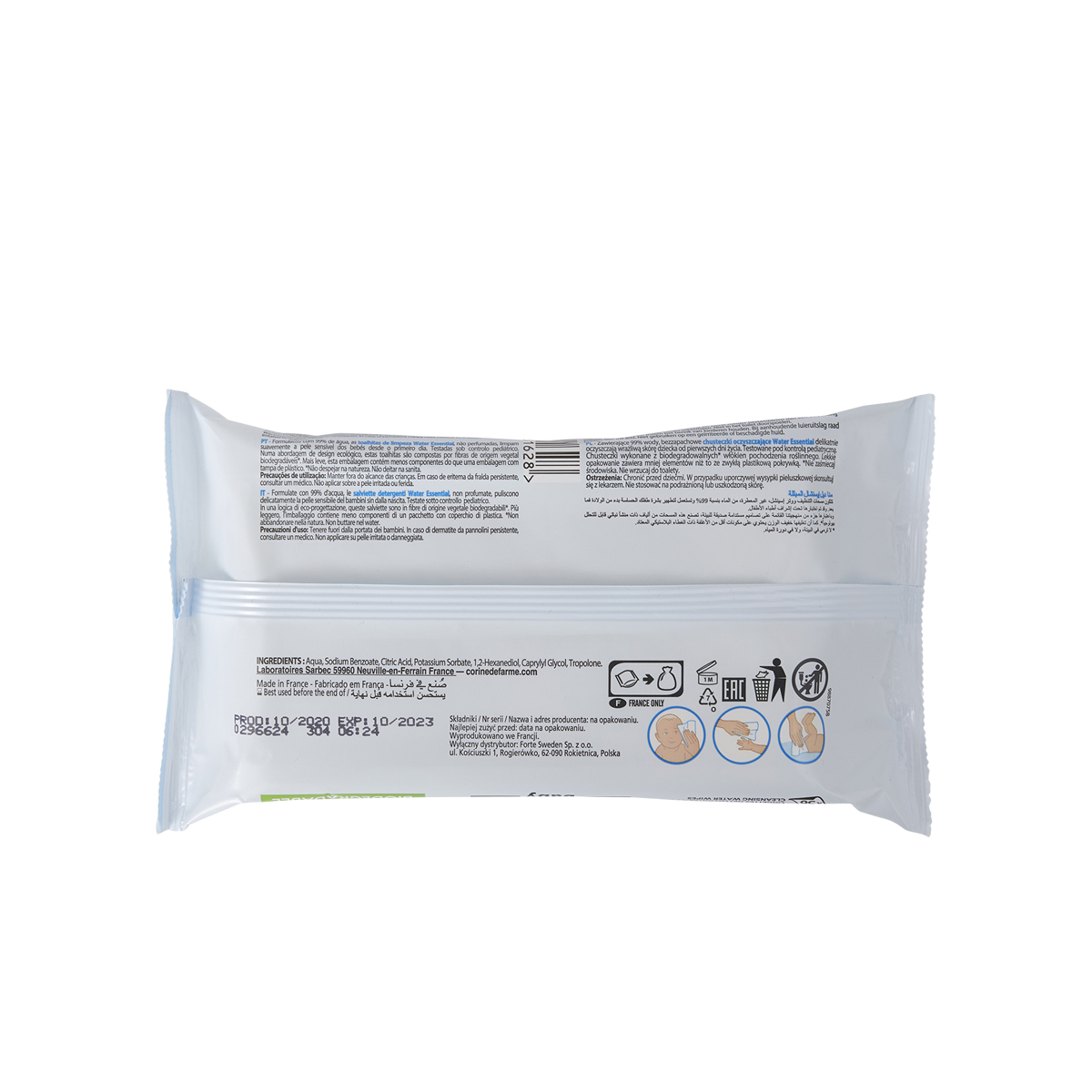 Dans une démarche d’éco-conception, ces lingettes sont en fibres d’origine végétale biodégradables*. Plus léger, l’emballage contient moins de composants qu’un paquet avec capot plastique.