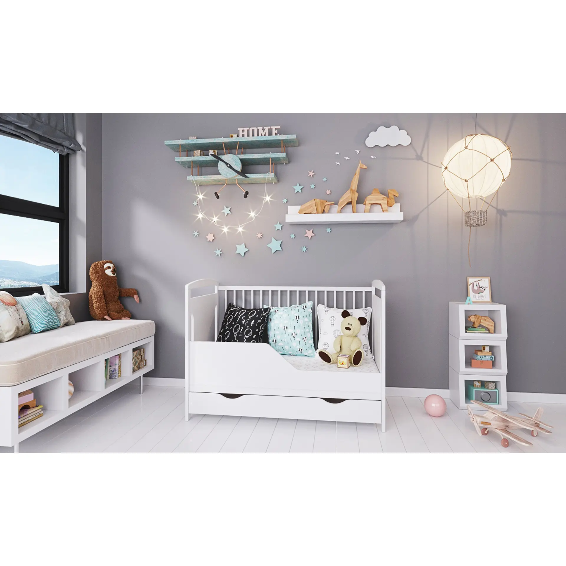 Une fois plus grand, bébé pourra entrer et sortir de son lit comme il le souhaite. Pour cela, il vous suffit de remplacer un coté du lit par la barrière de sécurité incluse ou bien de retirer simplement les trois barreaux amovibles situés au milieu du lit.