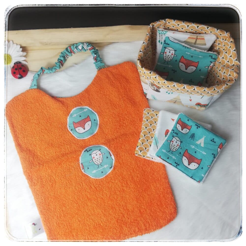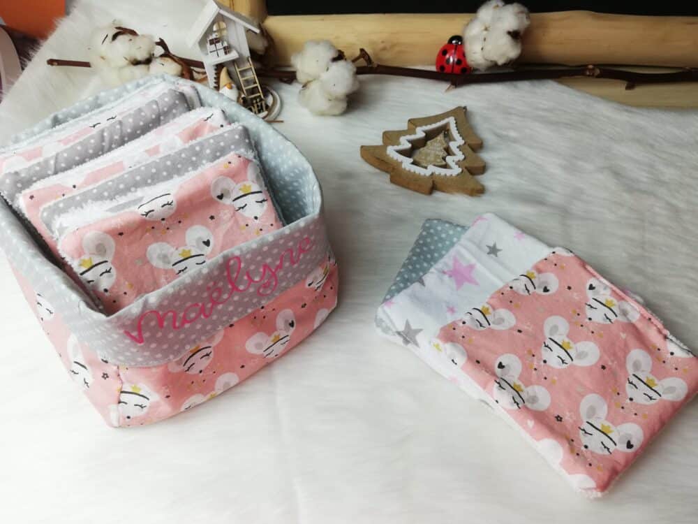 Jolie panière réversible accompagnée de ses lingettes assorties lavables extra douces!