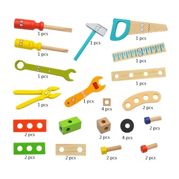 La mallette de bricolage n’est pas seulement bénéfique pour les enfants, elle l’est aussi pour vous, les parents. En offrant ce jouet, vous encouragez le développement de leur indépendance et de leurs compétences pratiques tout en sachant qu’ils jouent avec un produit sûr et de qualité. Tous les outils sont conçus en bois naturel, durable, et adaptés à la taille des mains d’un enfant. Le kit est facile à ranger grâce à la mallette incluse, ce qui vous permet de garder l’espace de jeu organisé.