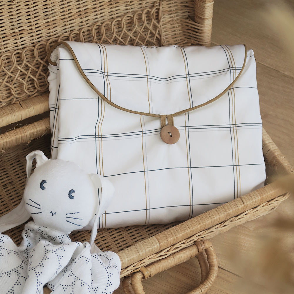 Intemporel et délicat, l’imprimé Saint-Honoré et ses doux carreaux apportent une touche de douceur à ce matelas à langer de voyage. Pratique, grâce à son bouton en bois permettant de le fermer, vous pourrez l’emporter partout durant vos sorties afin de changer bébé en toute simplicité. Et une fois déplié, son rembourrage moelleux ainsi que sa protection intérieure imperméable en feront votre accessoire préféré.