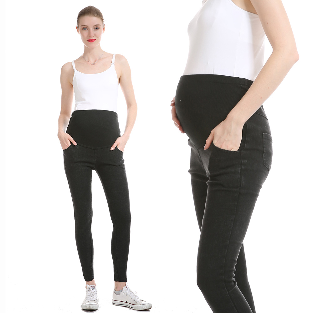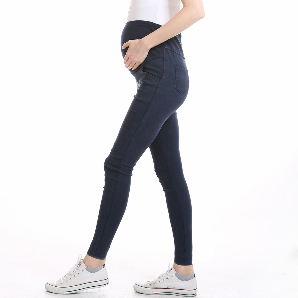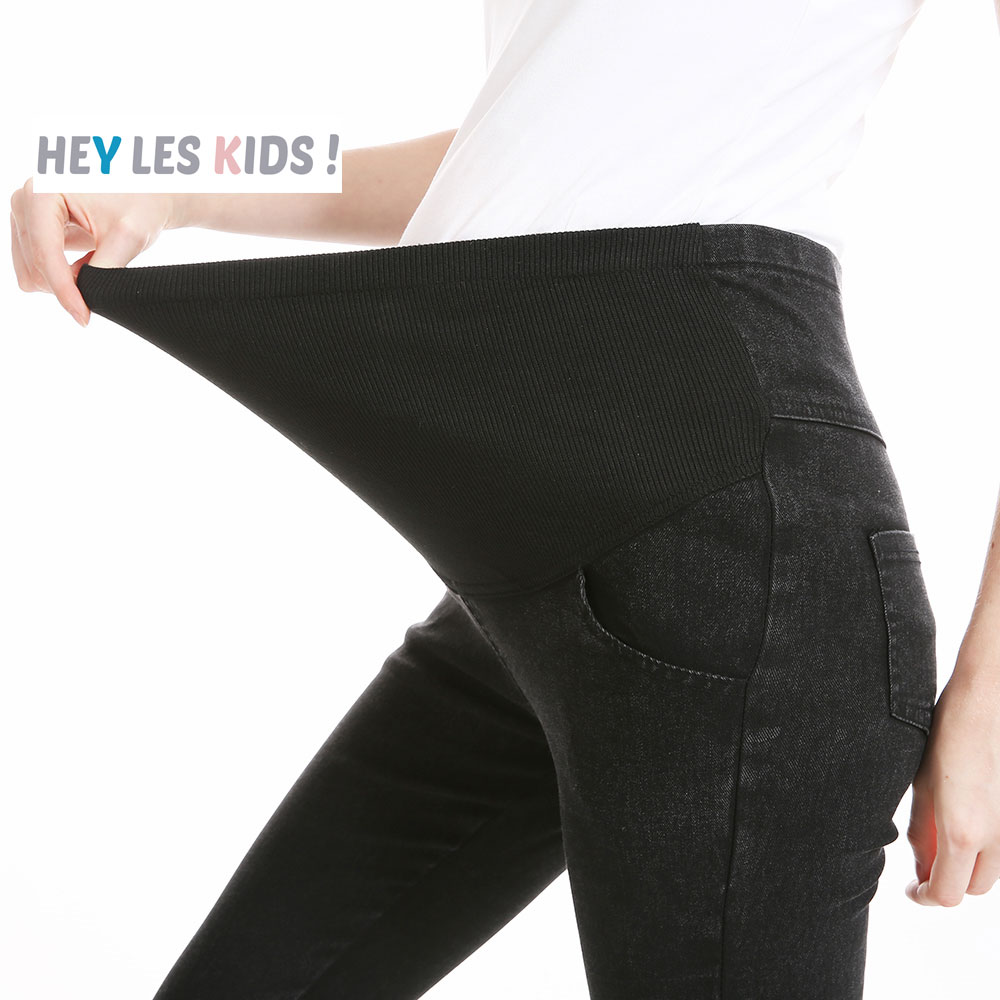 Joli pantalon jean denim pour femme enceinte. Large bandeau en maille super stretch.