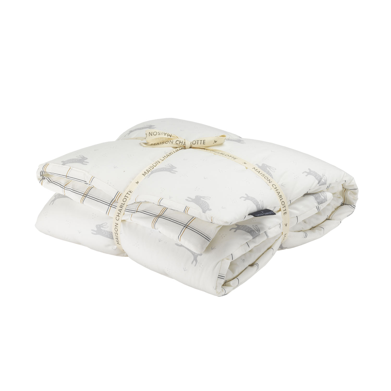 Pour aider bébé à passer de belles nuits au chaud, ce plaid 70×100 cm de Maison Charlotte est un indispensable. Avec son élégant piqué rond et son garnissage en Ouate, bébé peut dormir sur ses deux oreilles et pendant toute la nuit ! Les charmants motifs exclusifs de ce plaid pour bébé en 100% percale de coton organique sauront inspirer de doux rêves à votre enfant. Entre les malicieux petits lapins au recto et les carreaux raffinés au verso, l’ambiance dans la chambre de bébé pourra être réaménagée grâce aux motifs interchangeables. Cette couverture fera également un merveilleux cadeau de naissance pour les nourrissons.