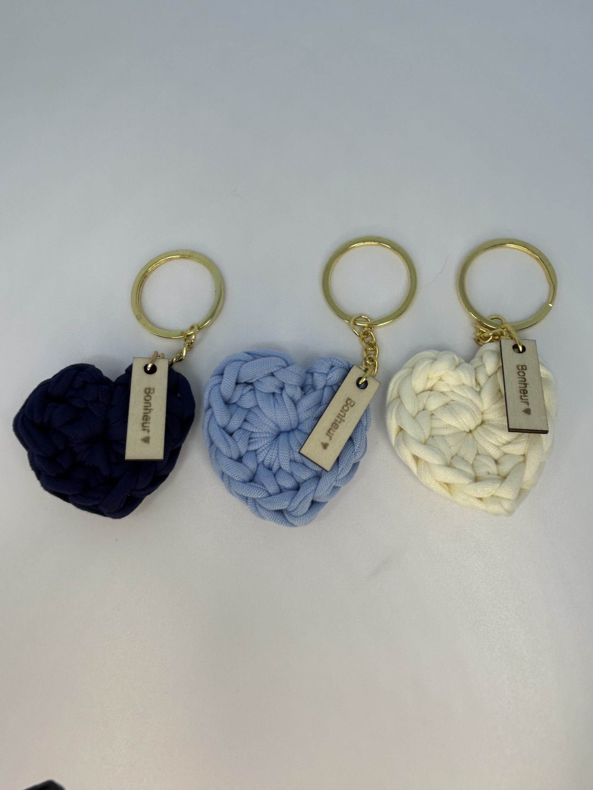 Ajoutez une touche de tendresse et de poésie à votre quotidien avec ce joli coeur en crochet, entièrement fait main avec amour. Orné d’une délicate breloque « Bonheur », il est parfait en décoration, porte-clés, bijou de sac ou petit cadeau attentionné.
