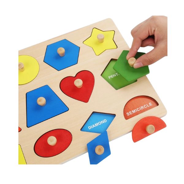 2. Une prise en main facilitée: Les petites mains ont parfois du mal à attraper des objets plats, mais ici, pas de souci ! Chaque pièce est équipée d’un bouton en bois lisse et résistant. Fini les crises de frustration parce que ça glisse ou que ça coince. Votre enfant peut saisir, placer, retirer et recommencer autant de fois qu’il le souhaite. Ce petit détail change tout et rend le jeu accessible même aux tout-petits.