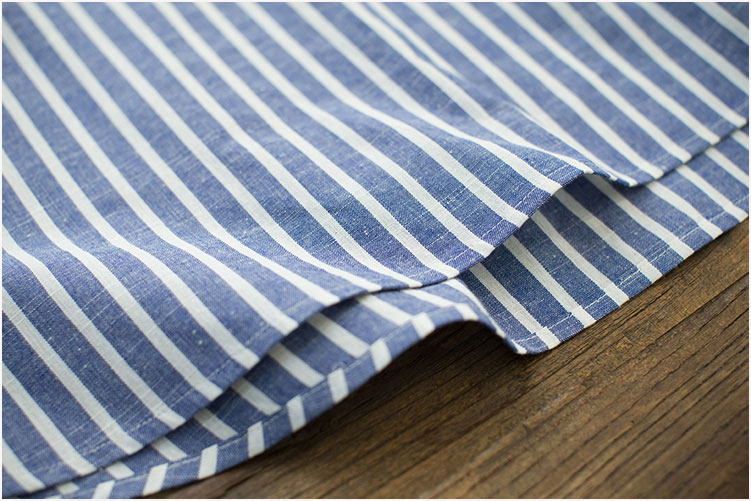Superbe robe tunique de couleur bleu avec des rayures blanches verticales. C’est une robe casual qui peut être portée en saisons printemps, été et automne.
