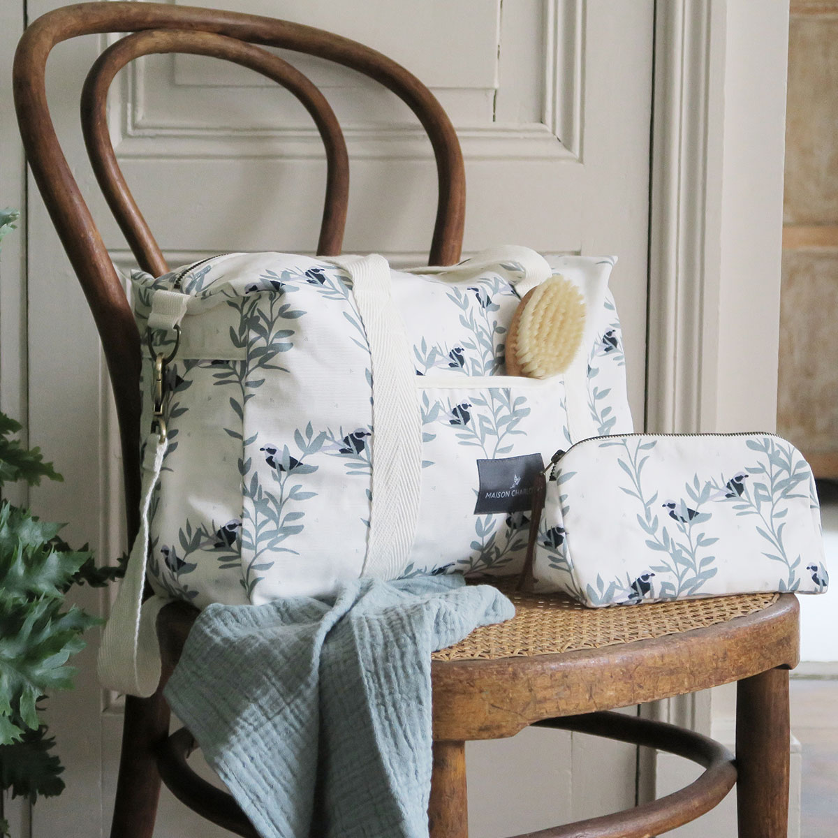 Afin de créer un joli ensemble harmonieux, associez ce sac de dimensions 40x26cm au matelas à langer de voyage de la même collection, ou bien encore la petite trousse de toilette en canevas.