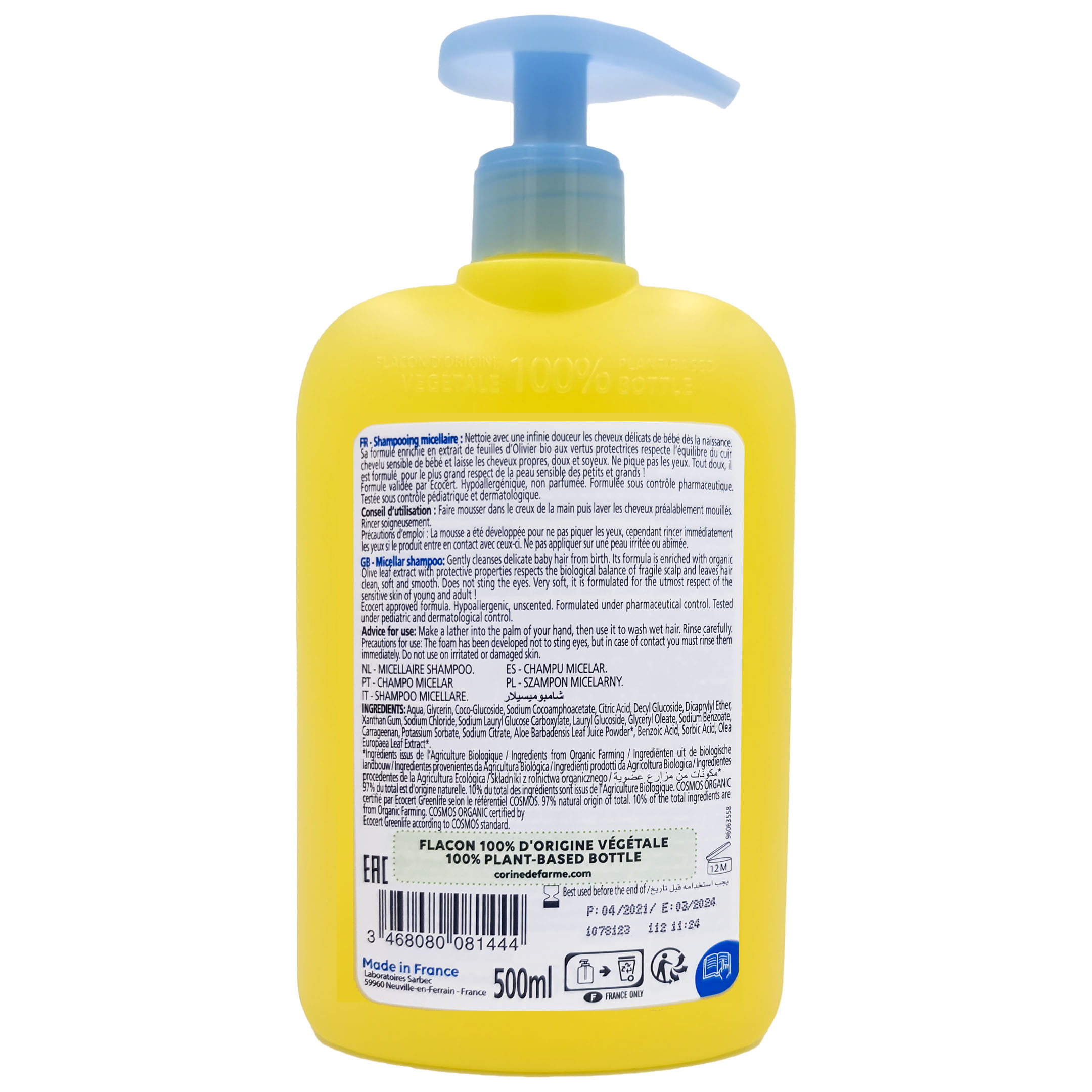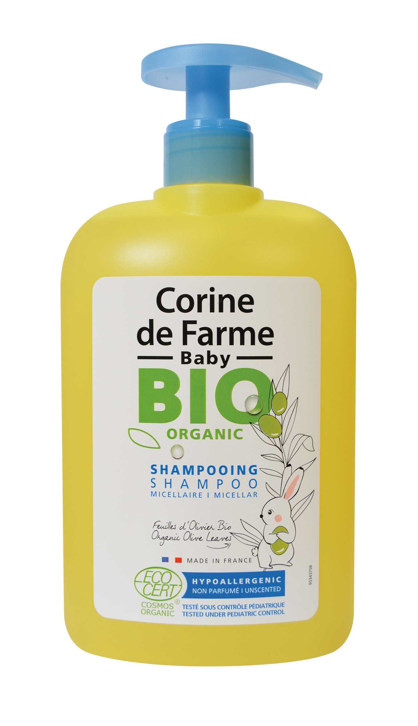 Ce Shampooing Micellaire Corine de Farme, non parfumé, est spécialement conçu pour nettoyer en douceur les cheveux délicats de bébé dès la naissance.