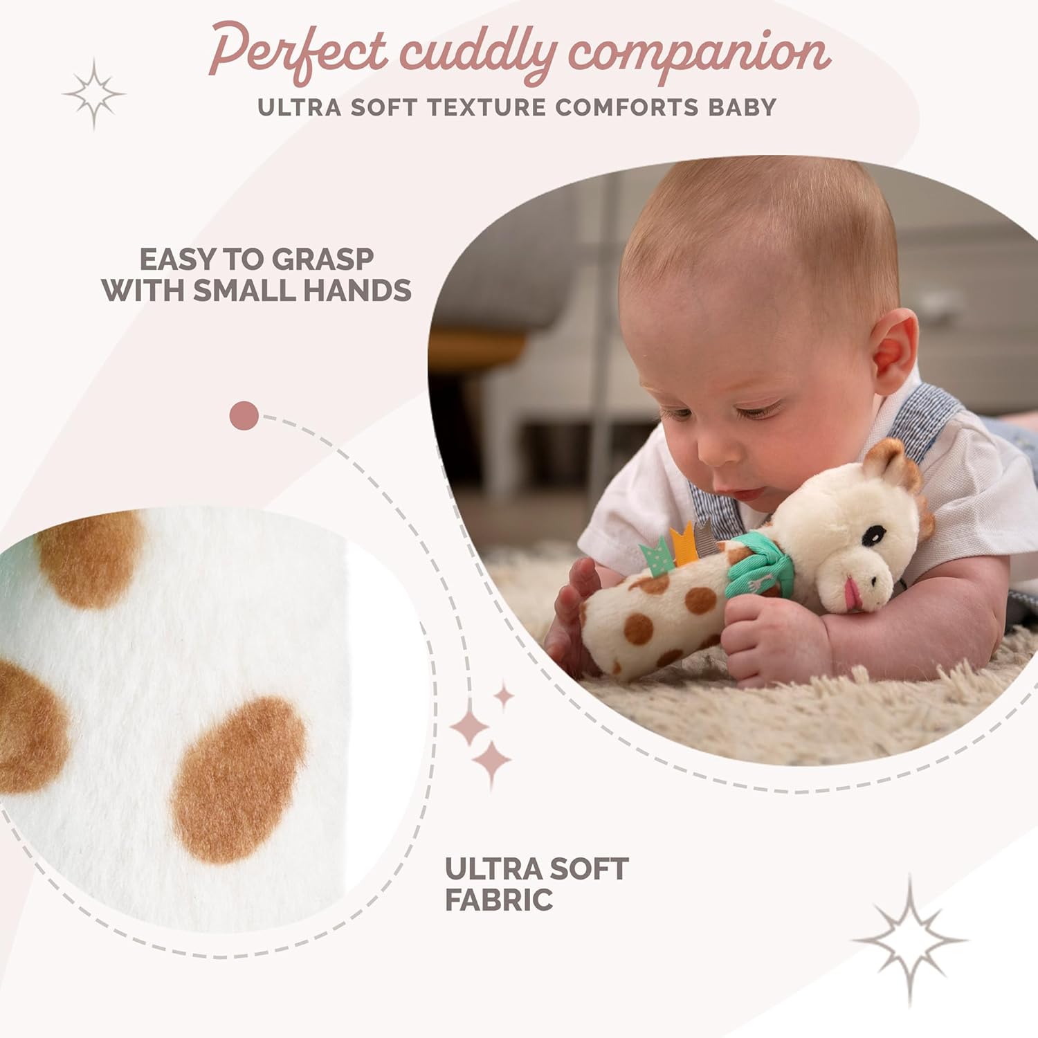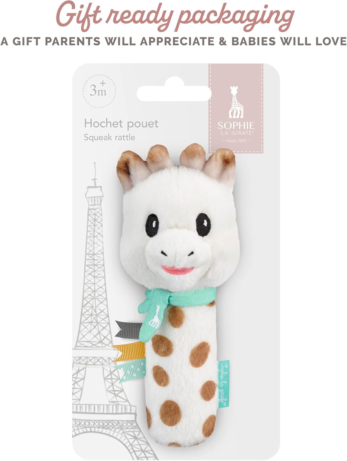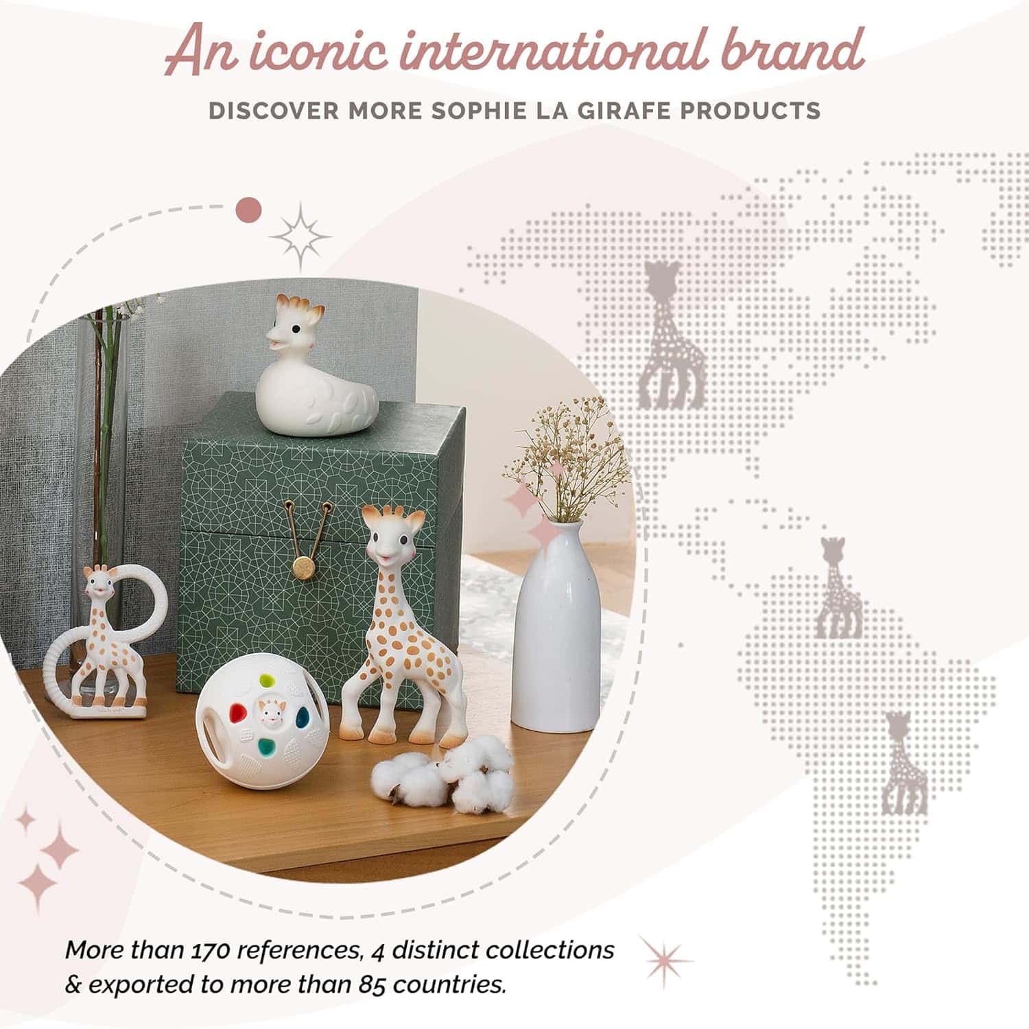 - Fonction grelot : Les billes situées dans la tête de Sophie ajoutent un son fascinant lorsque bébé agite le hochet.